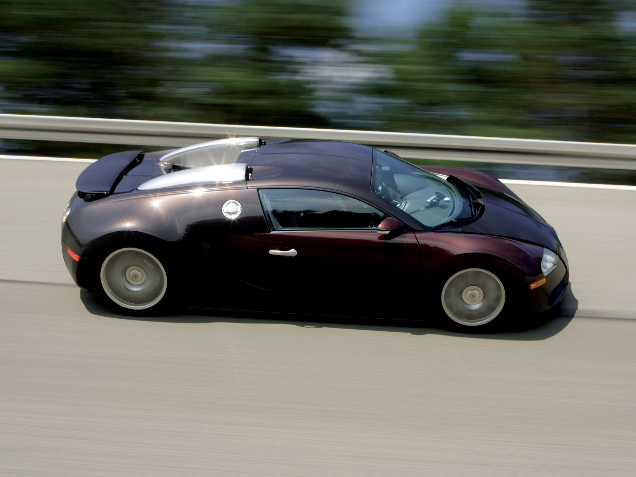 Скачать обои для рабочего стола Bugatti Veyron US-spec 2005–11 бок и фото