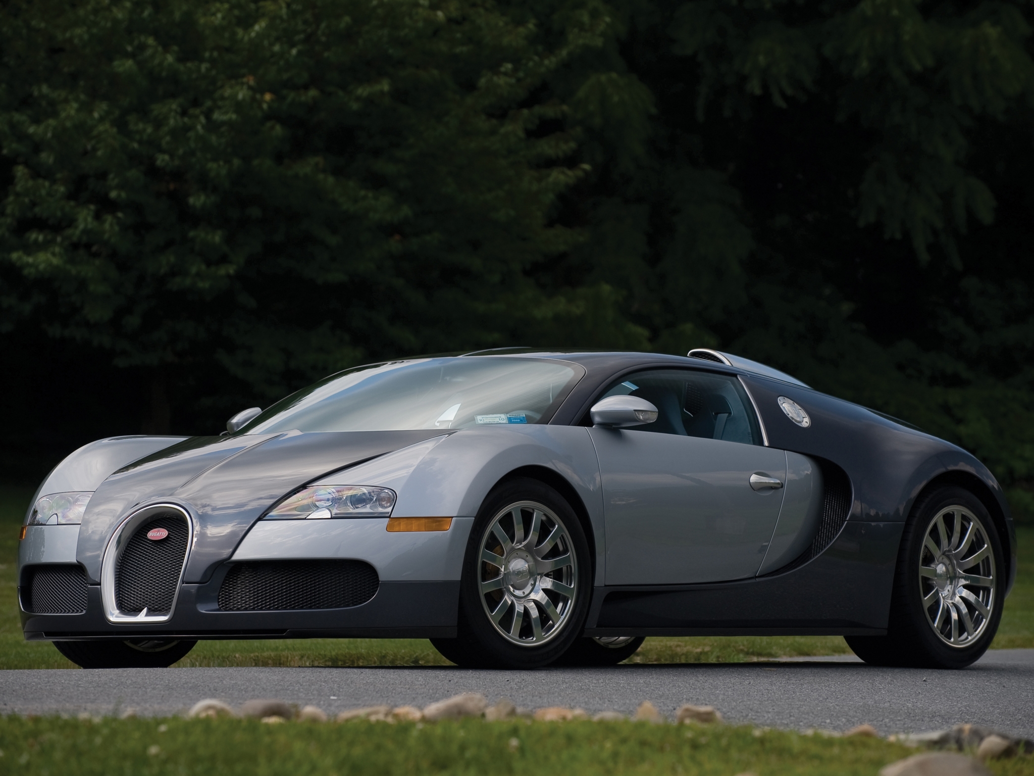 Скачать обои для рабочего стола Bugatti Veyron US-spec 2005–11 перед и фото