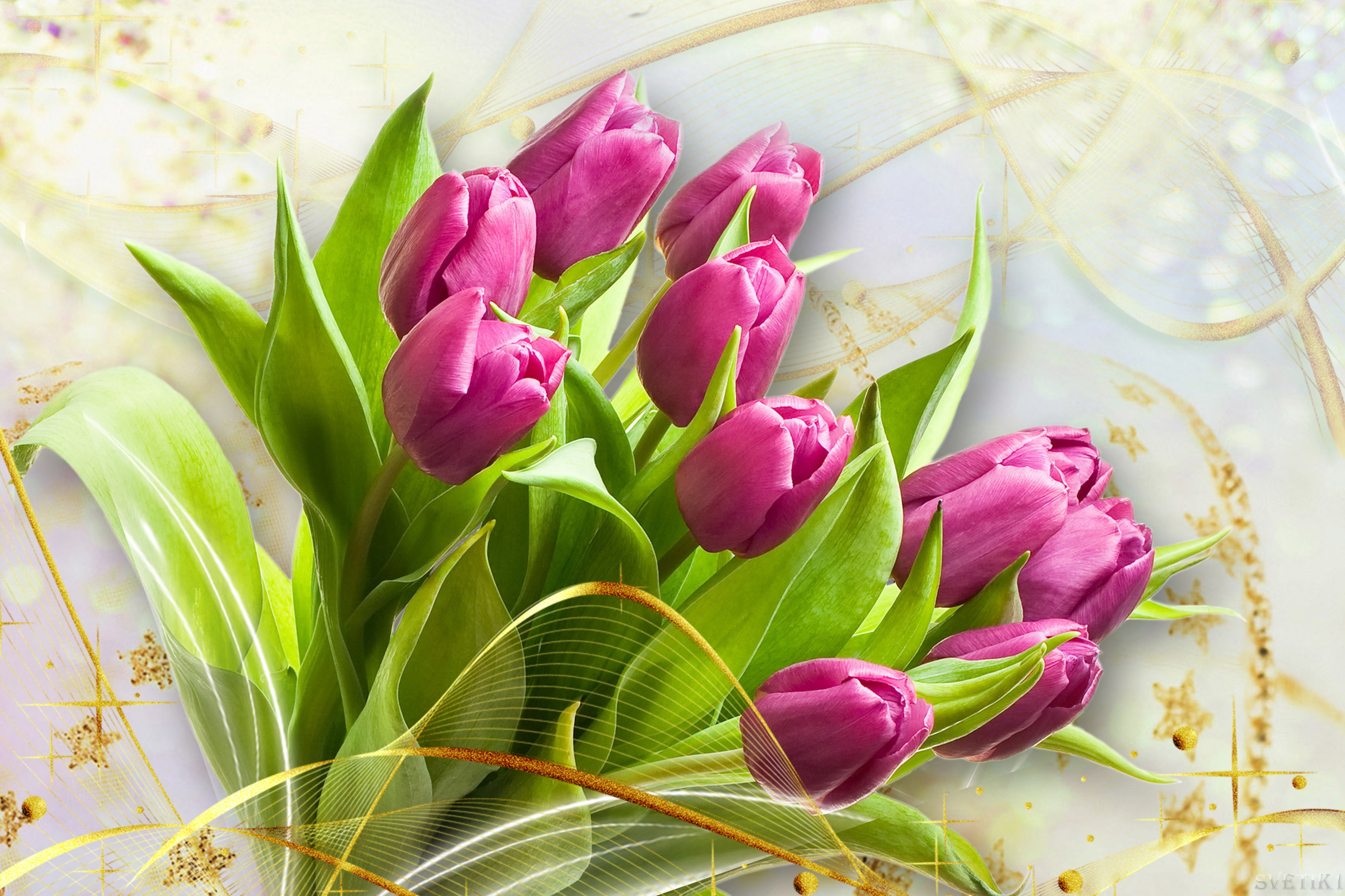 Скачать обои для рабочего стола Букет розовых тюльпанов и фото