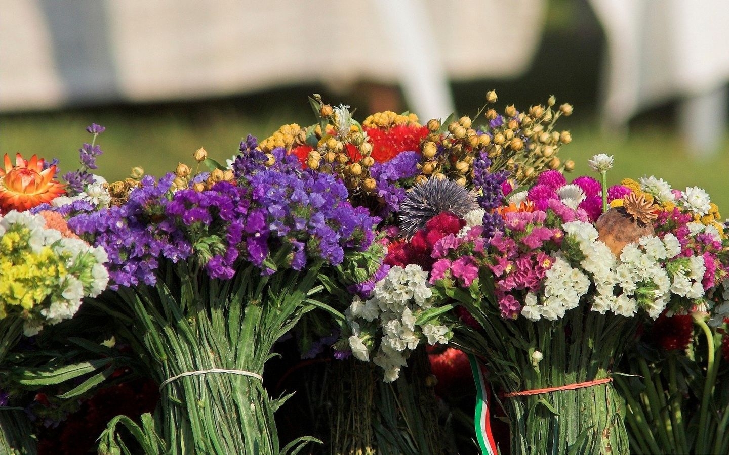Скачать обои для рабочего стола Букеты из полевых цветов и фото