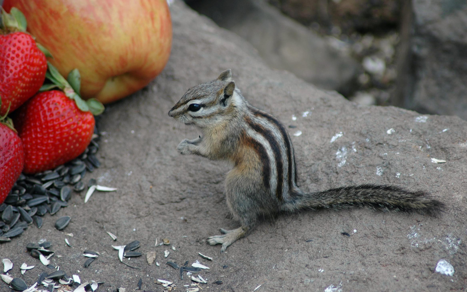Скачать обои для рабочего стола Бурундук стоит на задних лапах и фото