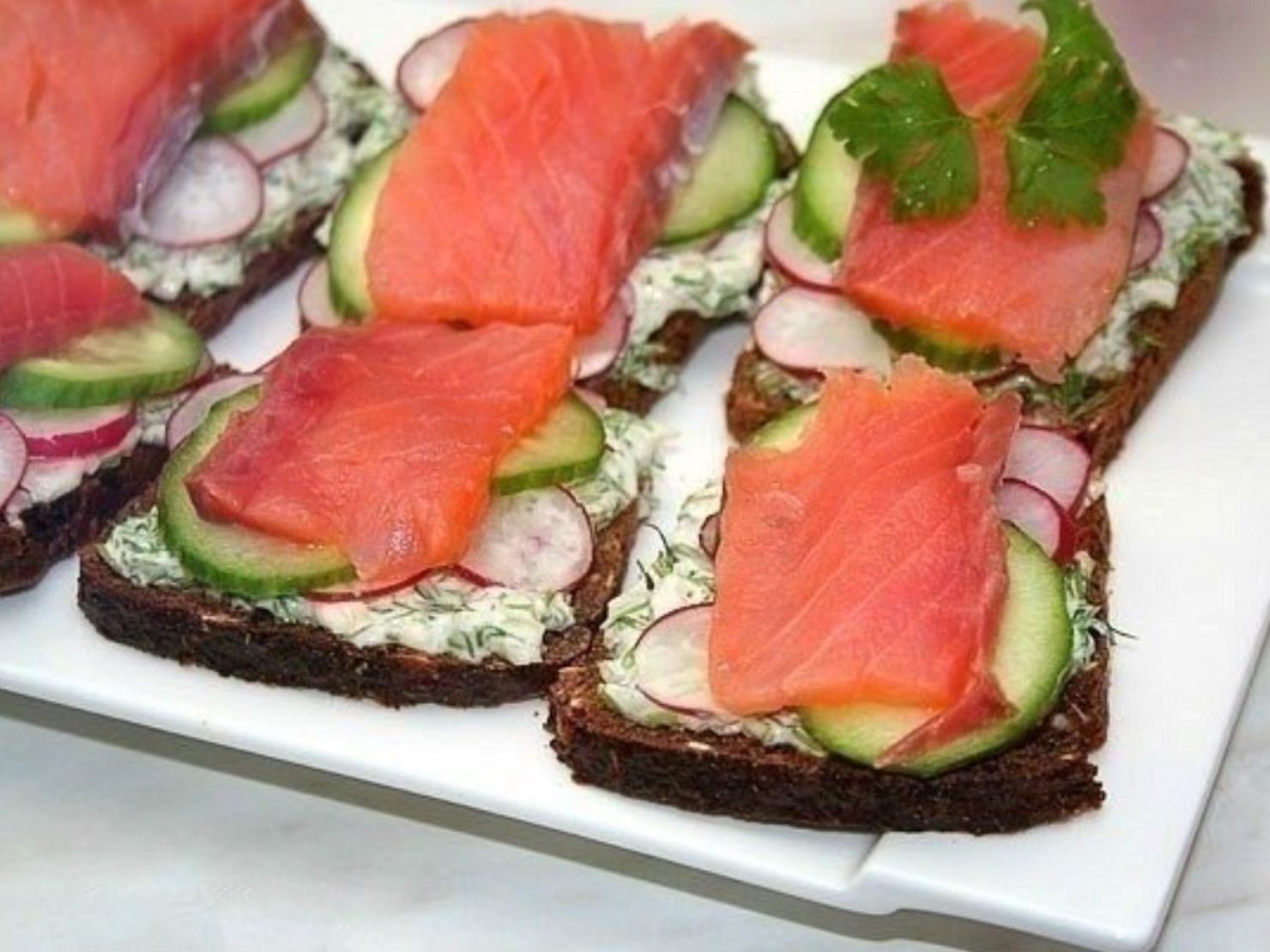 Скачать обои для рабочего стола Бутерброды с сёмгой и фото