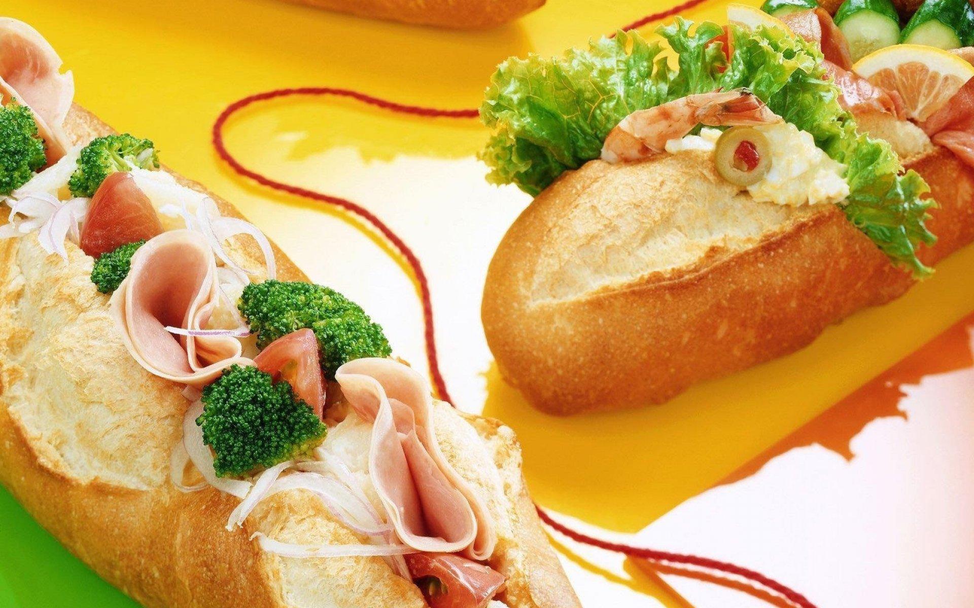 Скачать обои для рабочего стола Бутерброды с ветчиной и фото