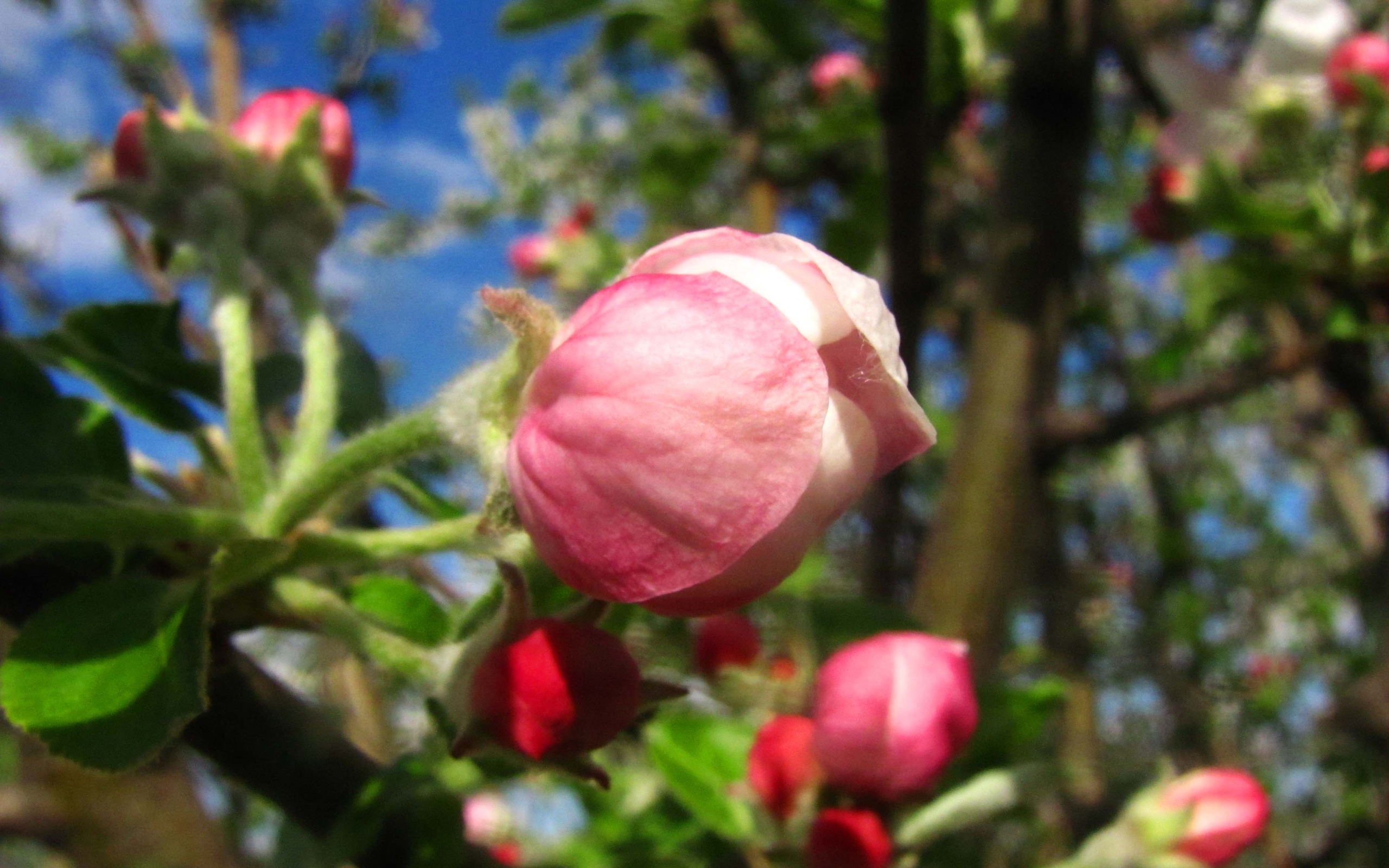 Скачать обои для рабочего стола Бутончики цветов под деревом и фото