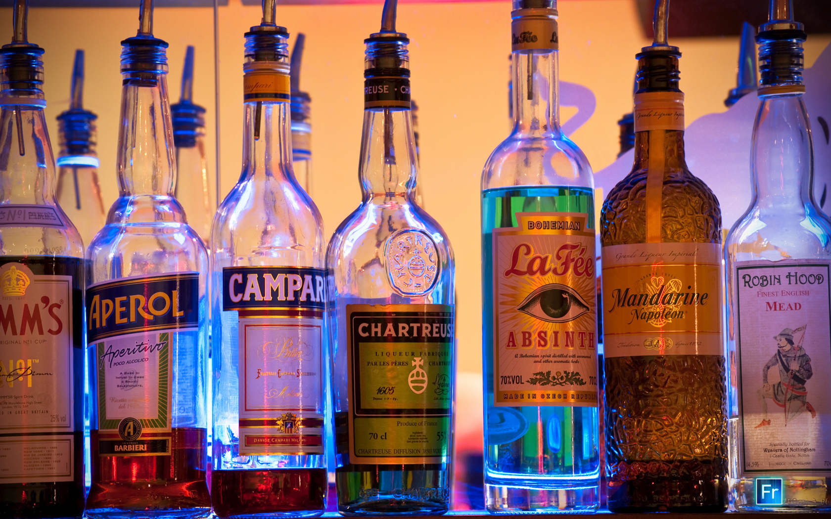 Скачать обои для рабочего стола Бутылочки со спиртным и фото