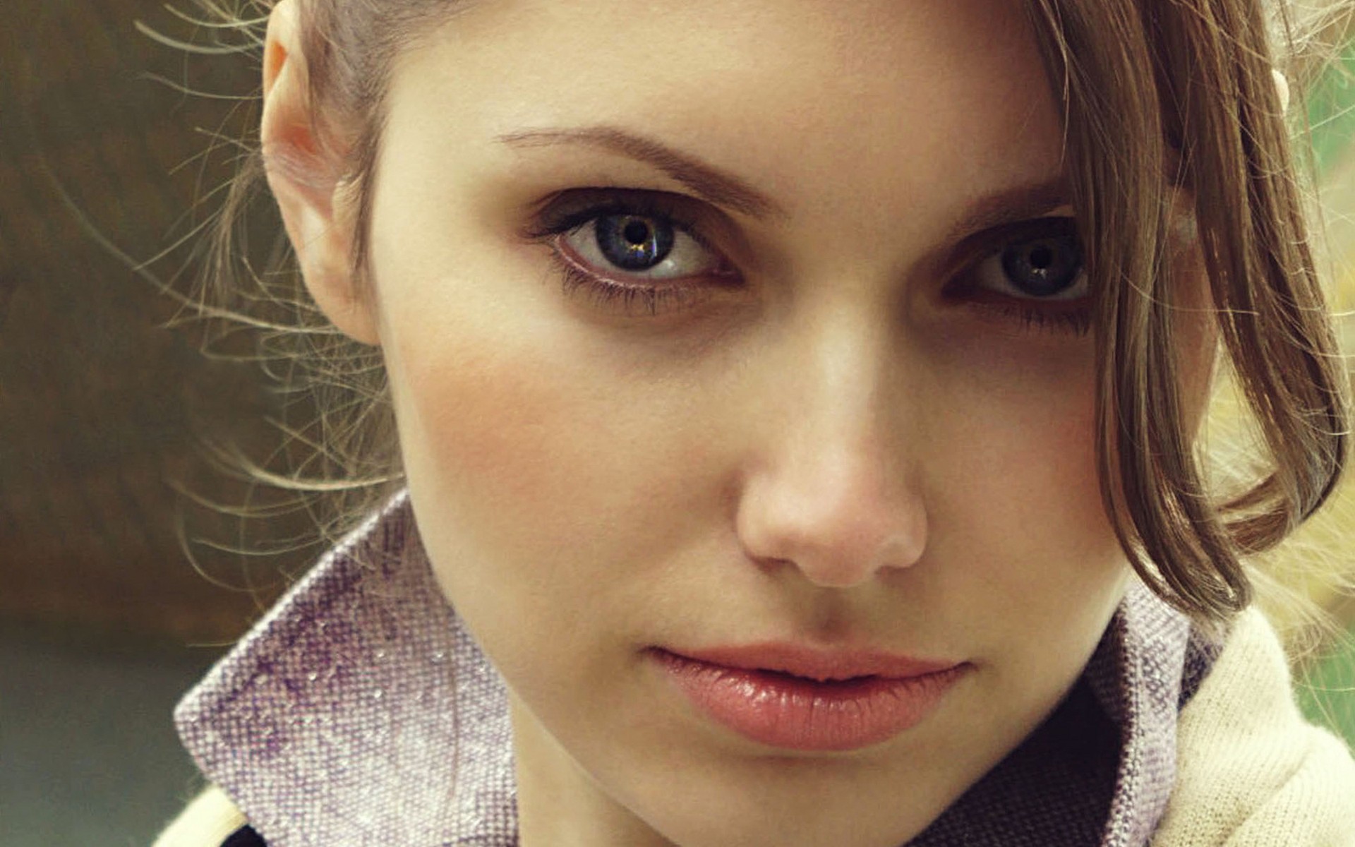 Скачать обои для рабочего стола Целомудренный взгляд девушки и фото