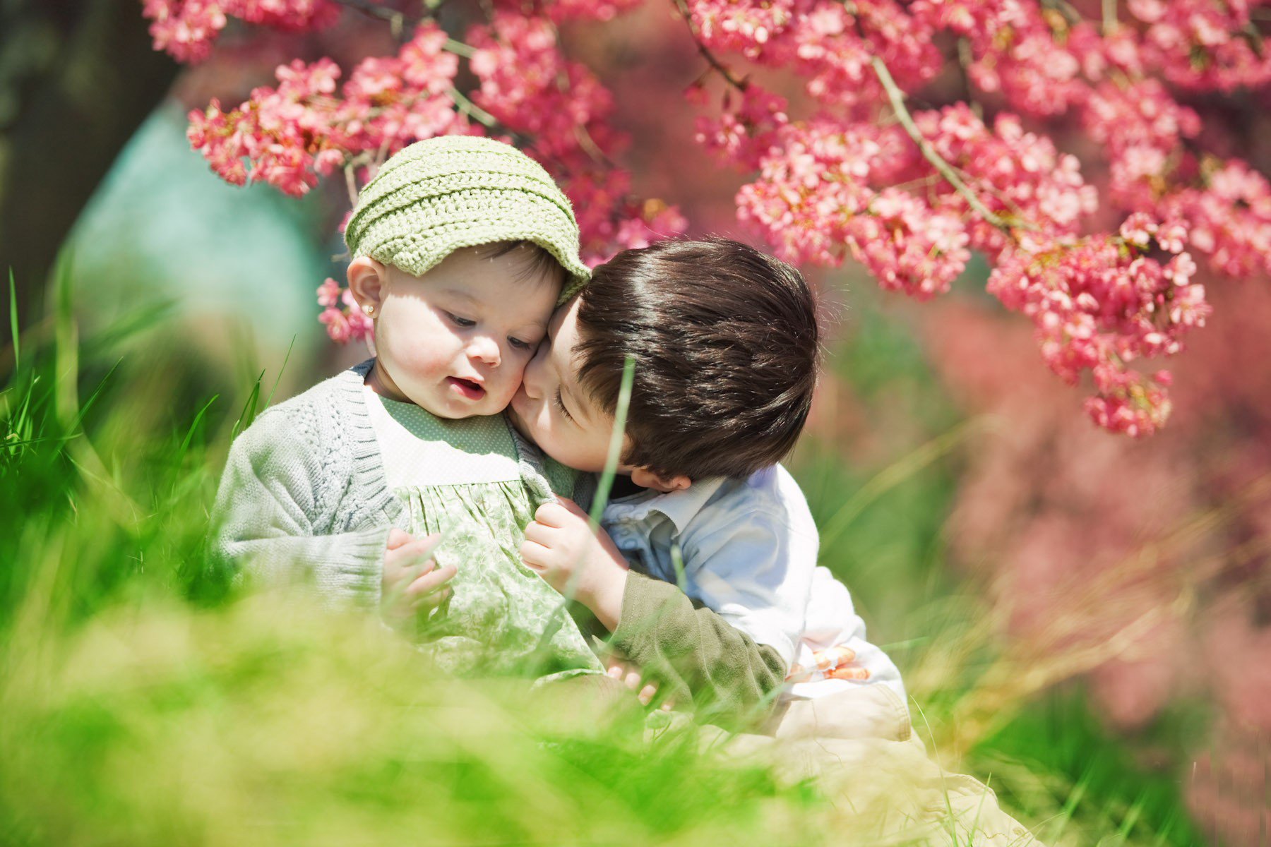 Скачать обои для рабочего стола Целует свою маленькую сестричку в щечку и фото