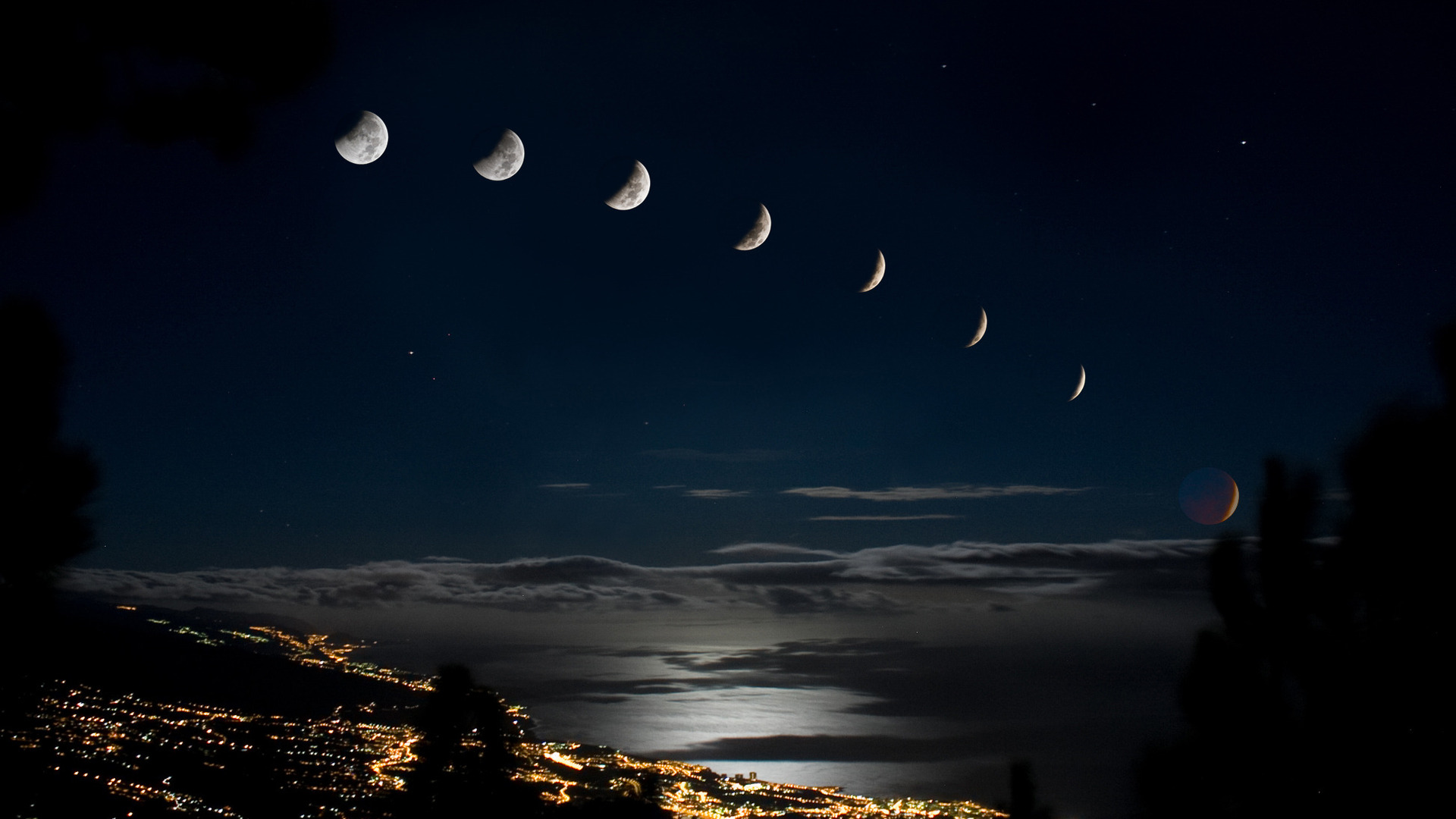 Скачать обои для рабочего стола Цепочка лун в небе и фото