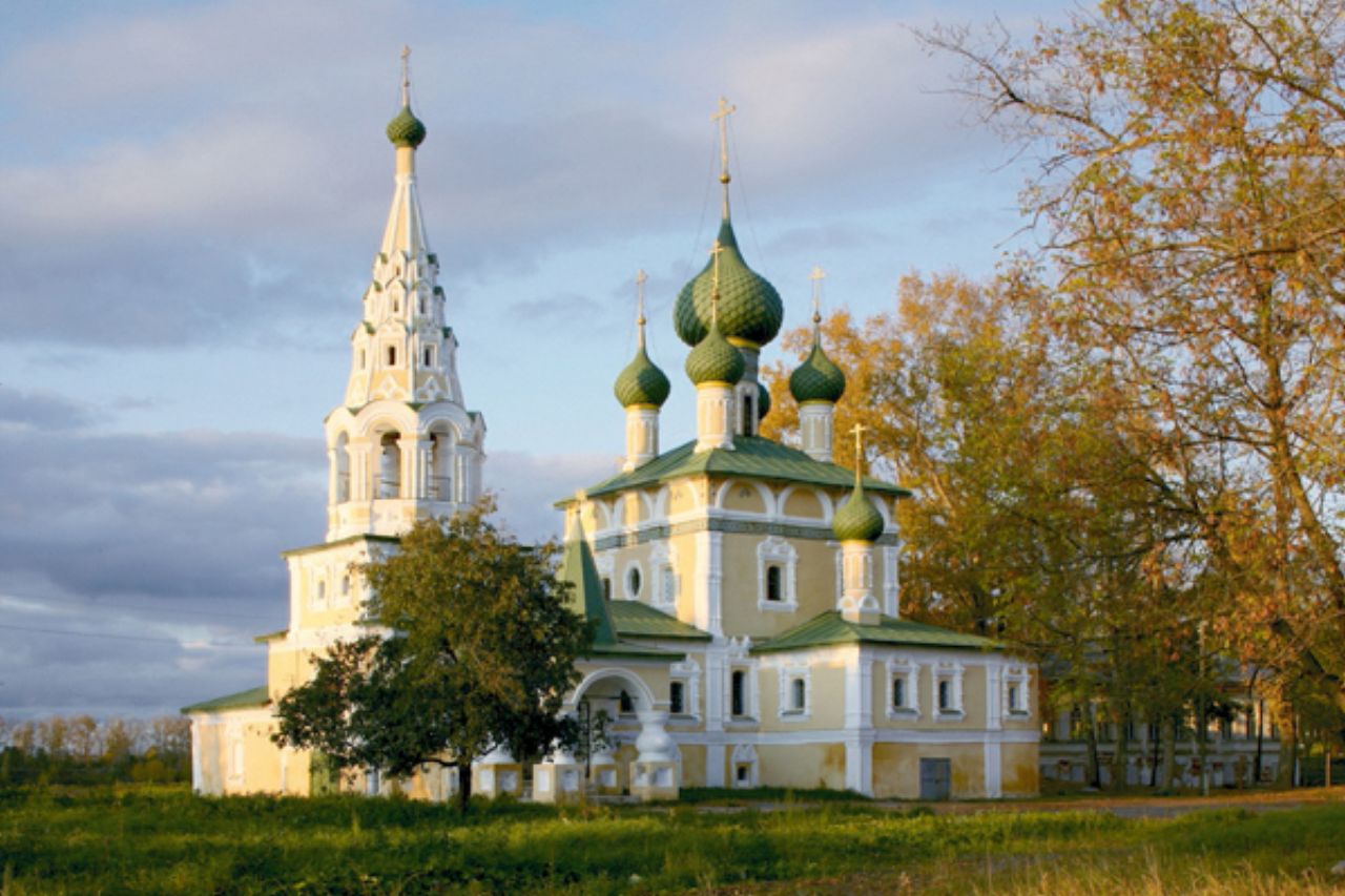 Скачать обои для рабочего стола Церковь с зелёными куполами и фото