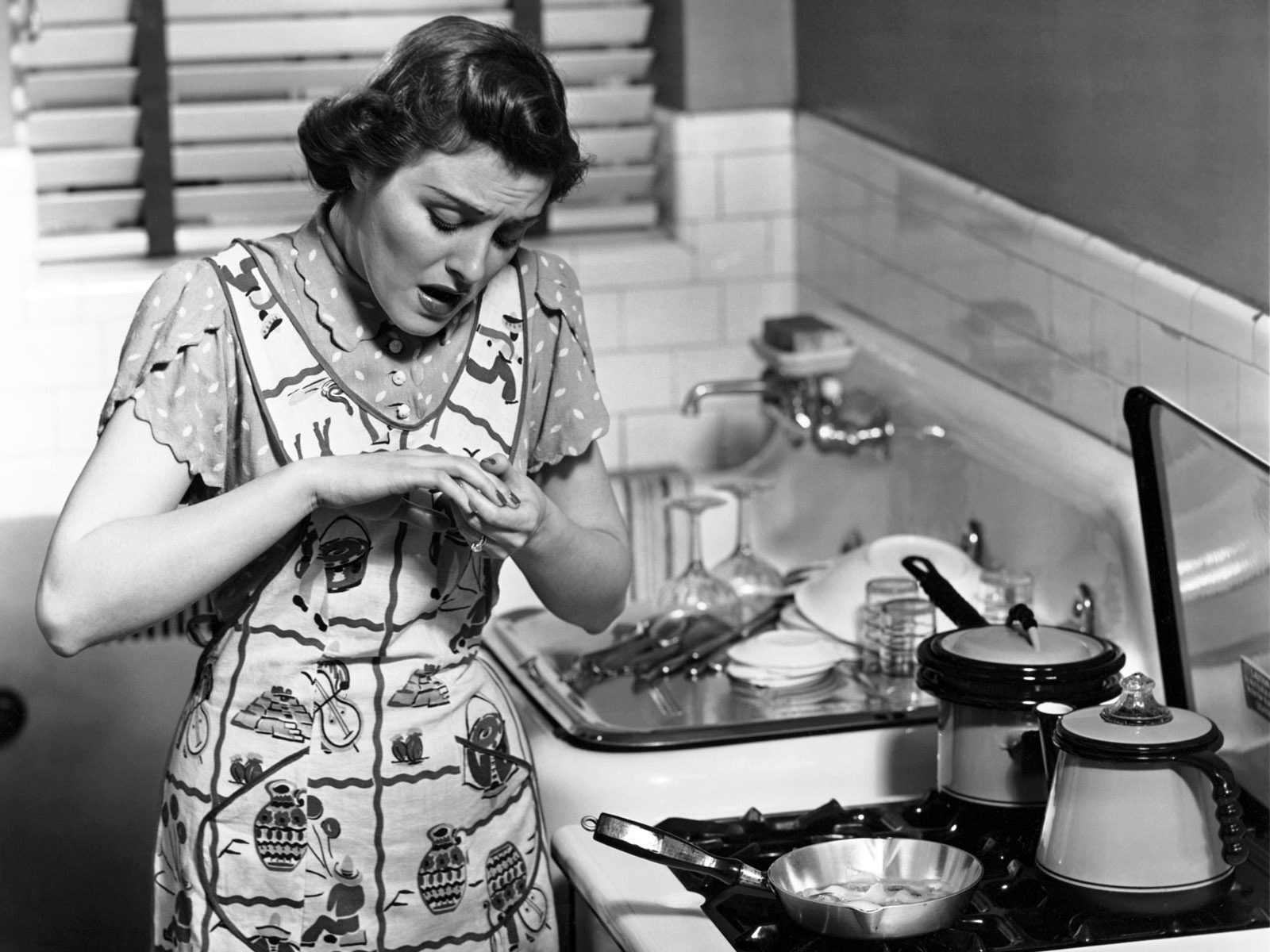 Скачать обои для рабочего стола Ч/б Девушка на кухне и фото