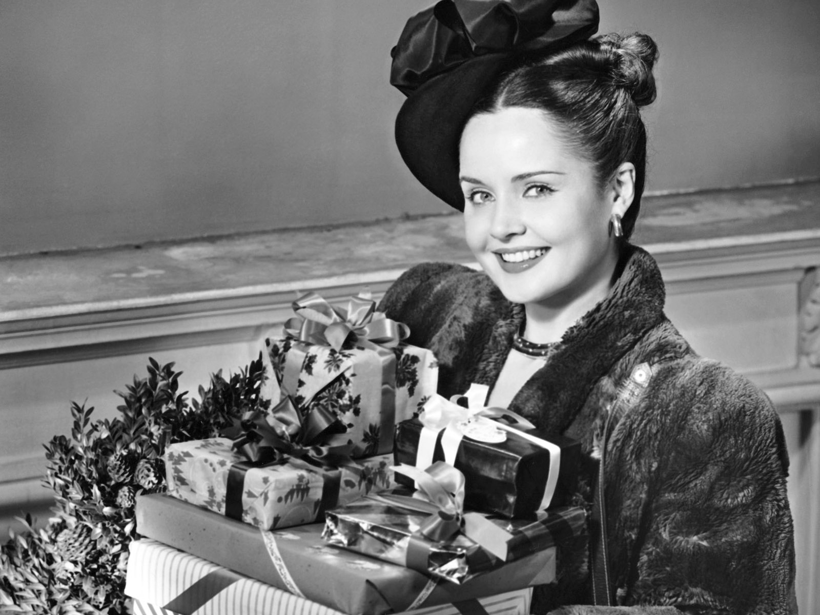 Скачать обои для рабочего стола Ч/б Девушки и подарки на ее руках и фото