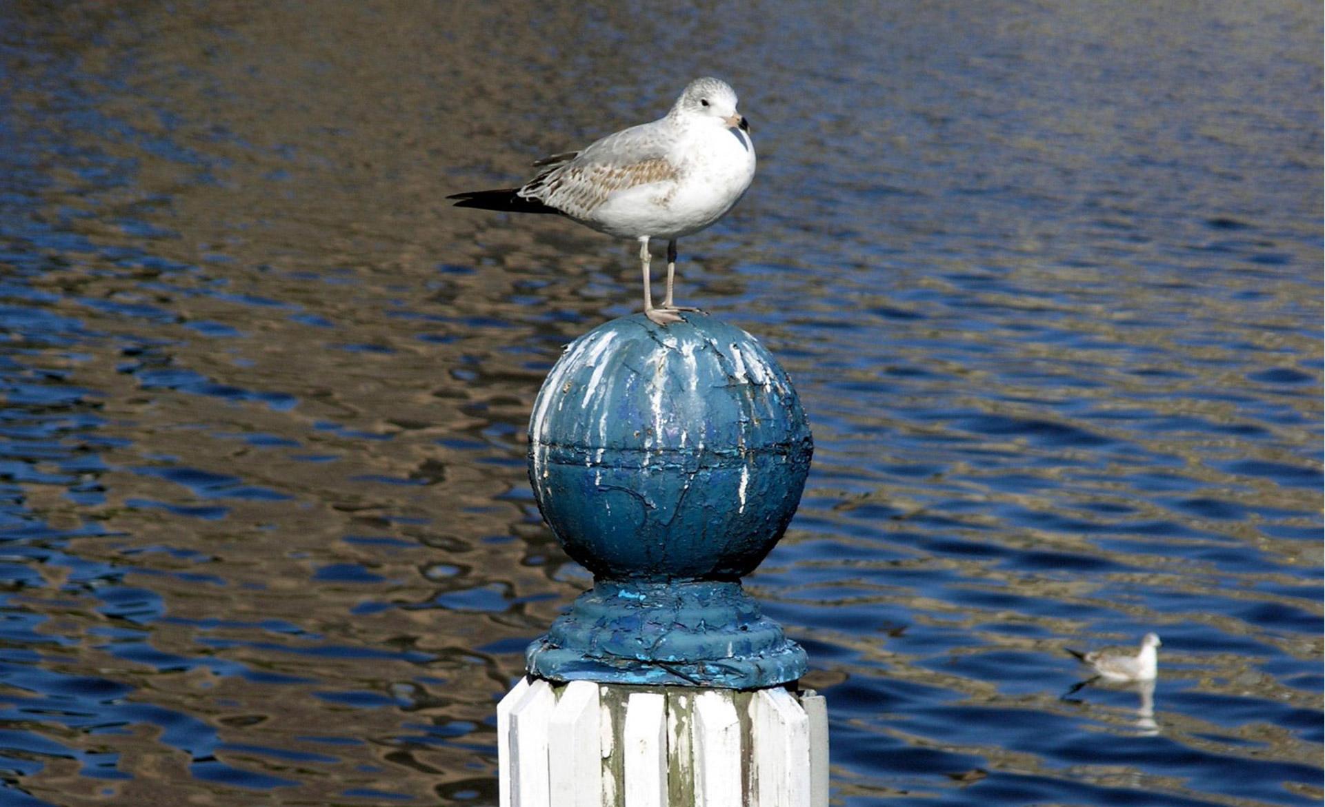 Скачать обои для рабочего стола Чайка сидит на камне и фото