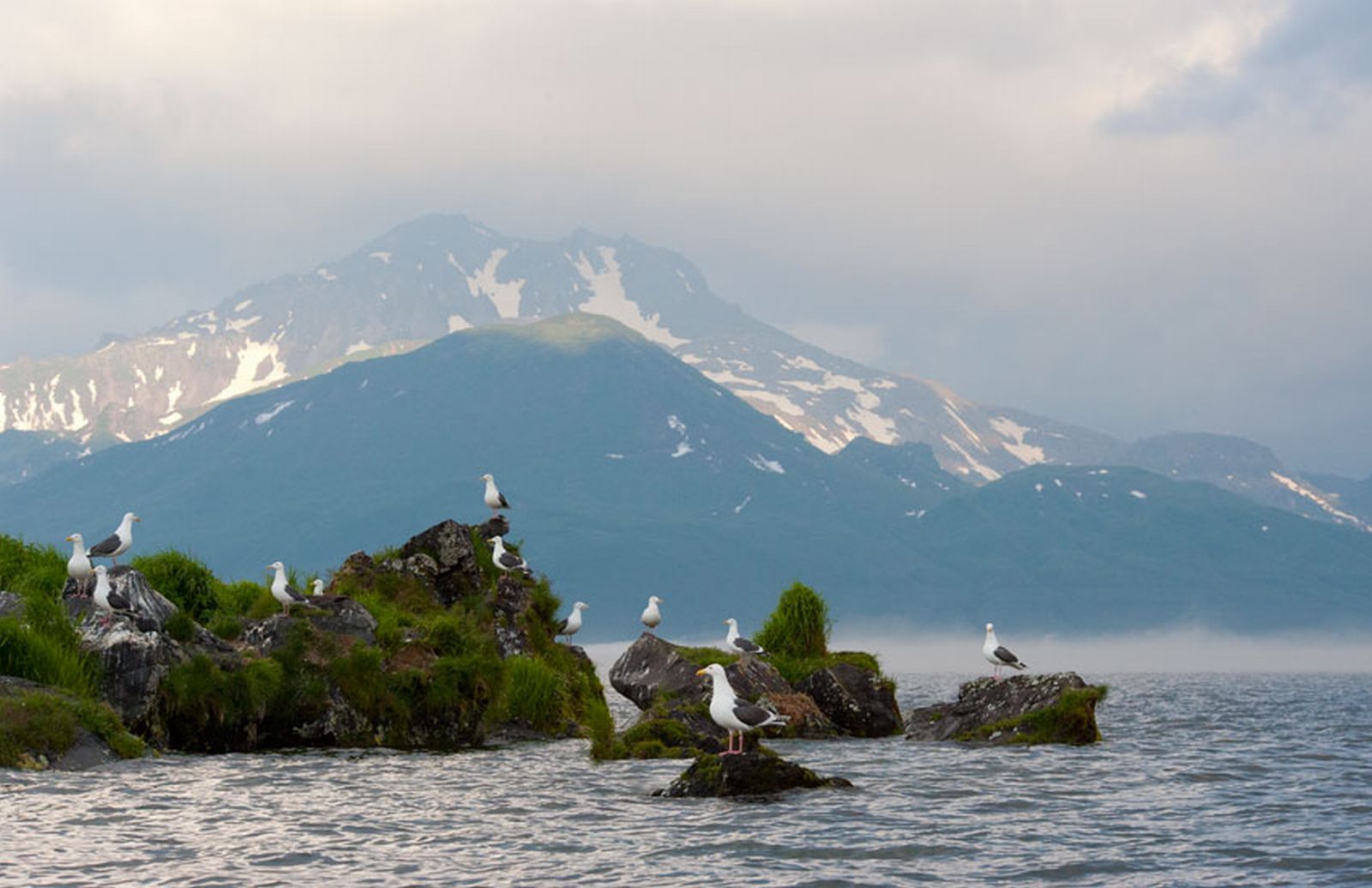 Скачать обои для рабочего стола Чайки, горы, озеро и фото