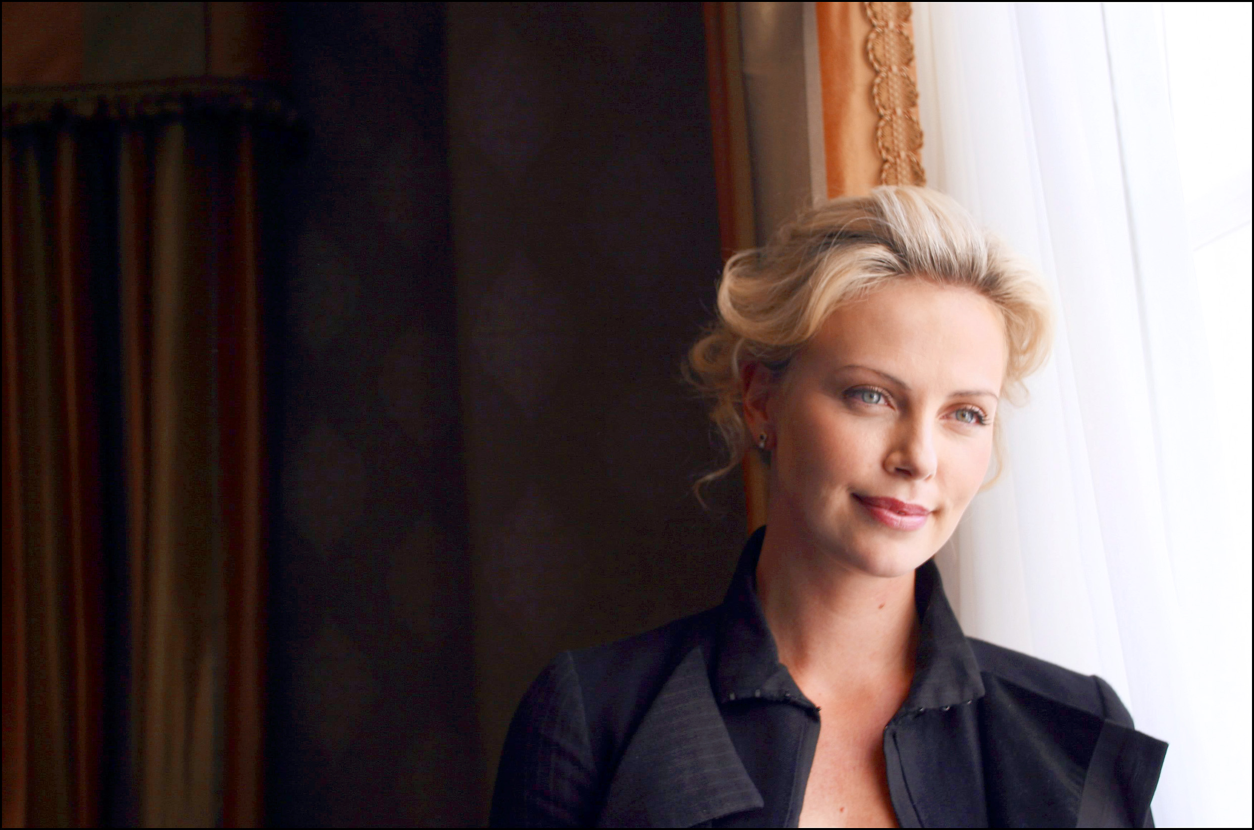 Скачать обои для рабочего стола Charlize Theron у окна и фото