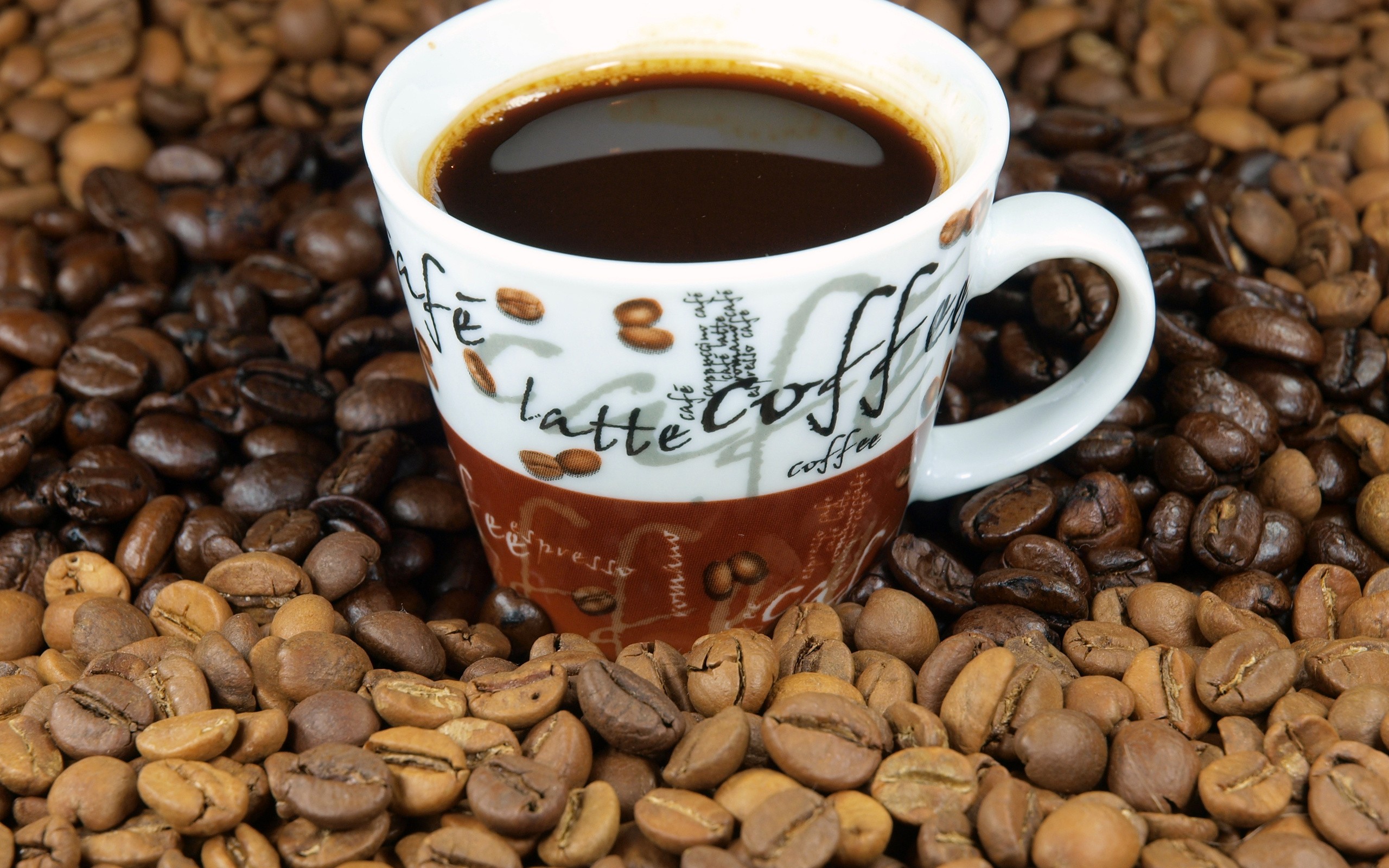Скачать обои для рабочего стола Чашка и разноцветные оттенки зерен кофе и фото
