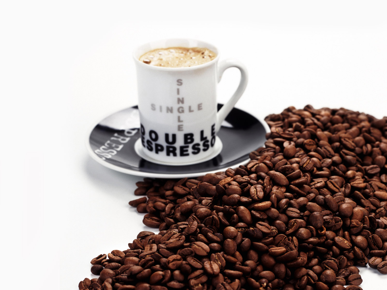 Обои Чашка кофе и много зёрен