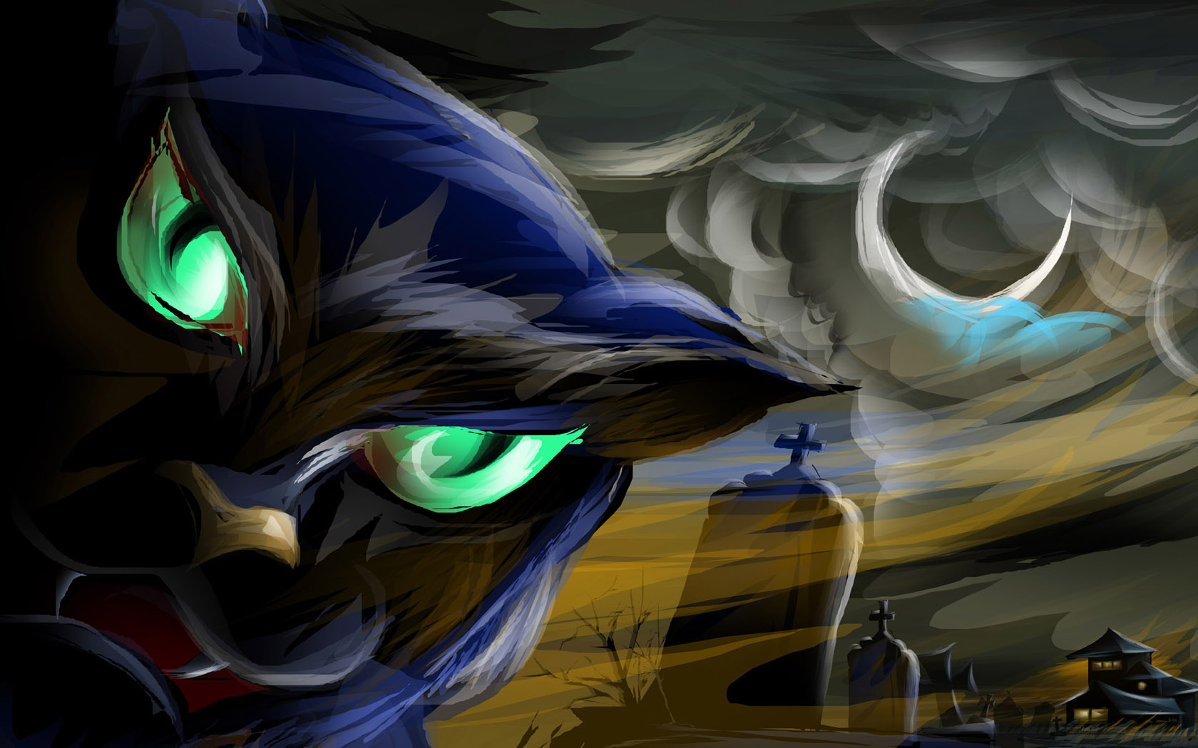 Скачать обои для рабочего стола Черная кошка на кладбище и фото