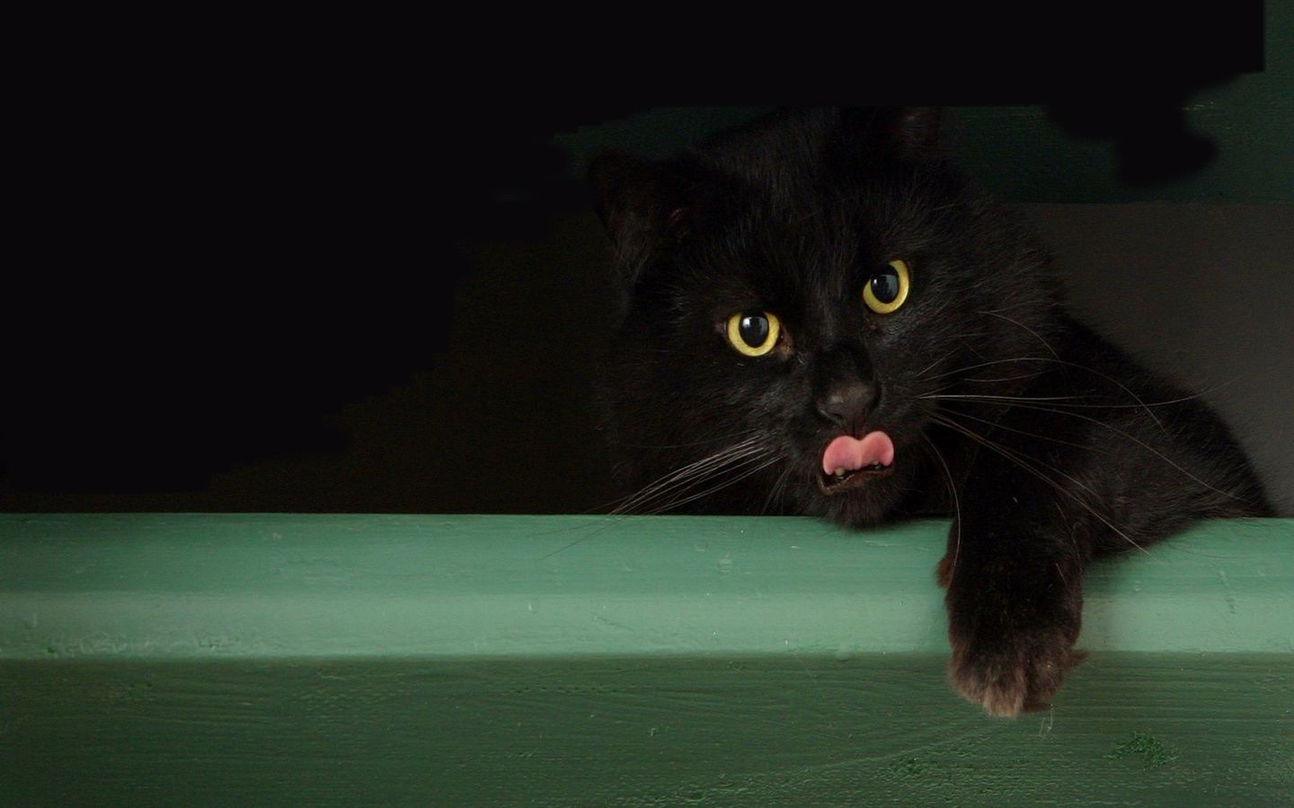 Скачать обои для рабочего стола Чёрная облизывающая кошка и фото