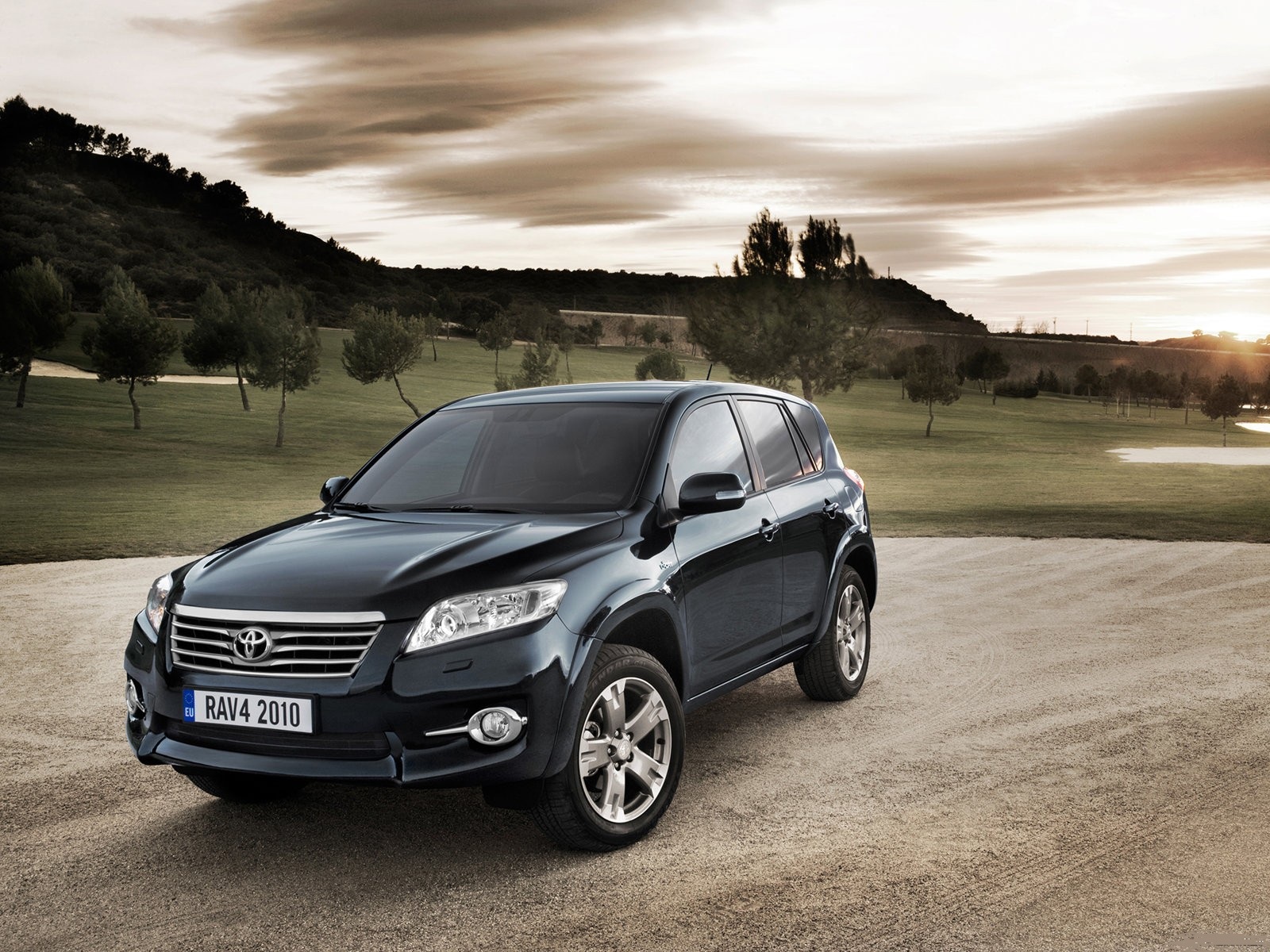Скачать обои для рабочего стола Черная Тойота Rav 4 2010 на фоне деревьев и фото