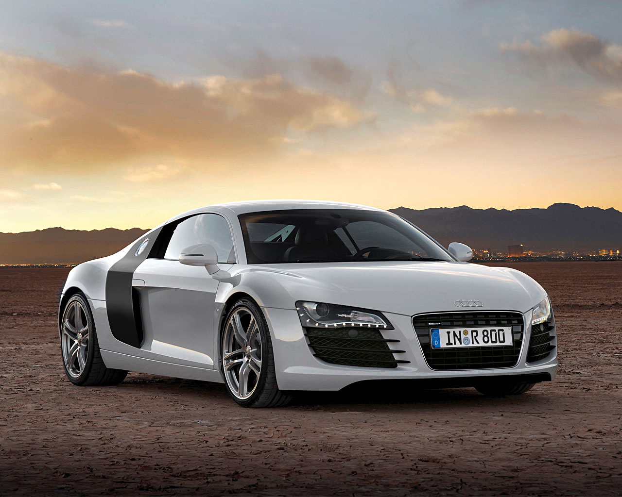 Скачать обои для рабочего стола Черно-белая Audi R8 и фото