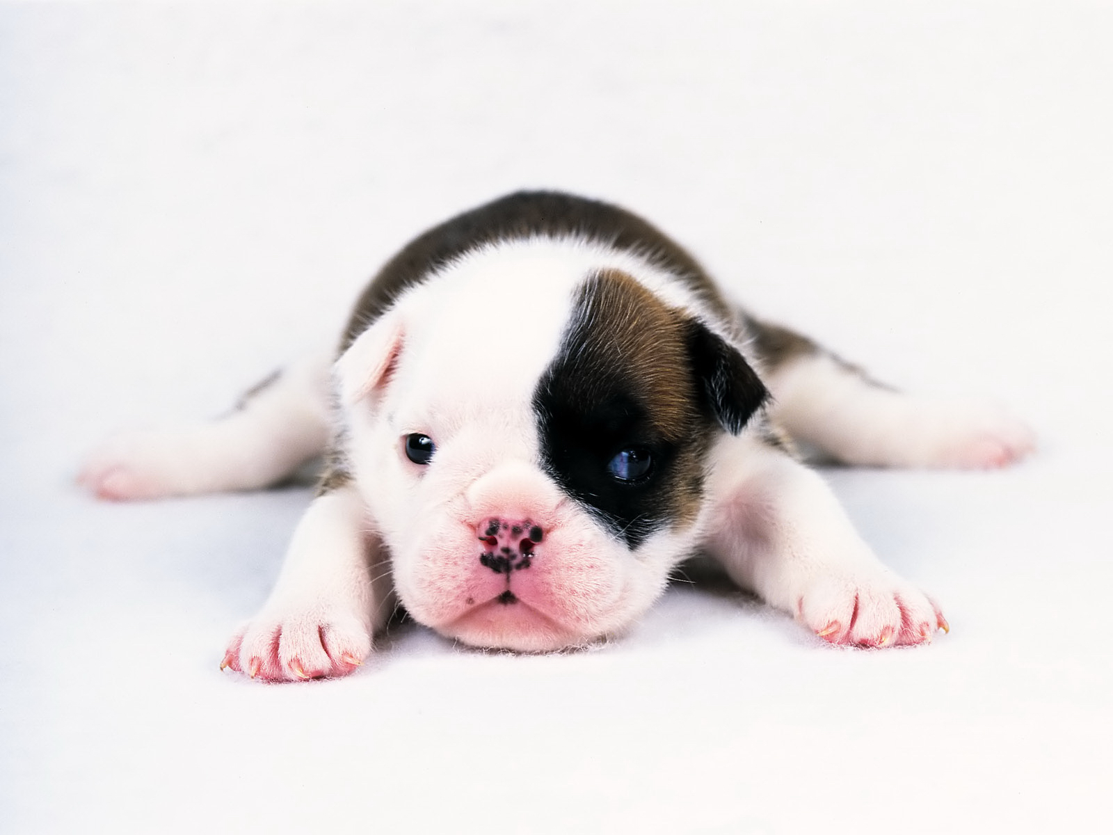 Скачать обои для рабочего стола Черно-белый щенок на полу и фото