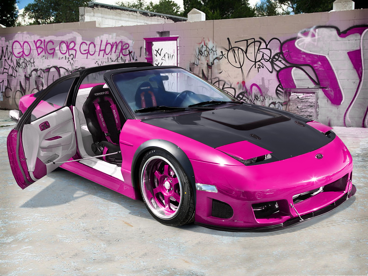 Скачать обои для рабочего стола Черно розовая машинка и фото