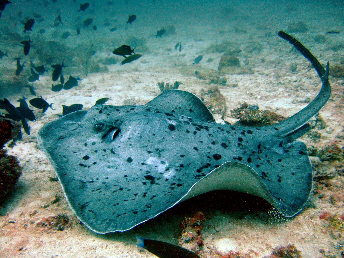 Скачать обои для рабочего стола Чернопятнистый хвостокол на дне и фото