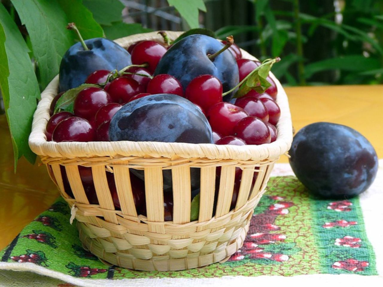 Скачать обои для рабочего стола Чернослив и вишня и фото