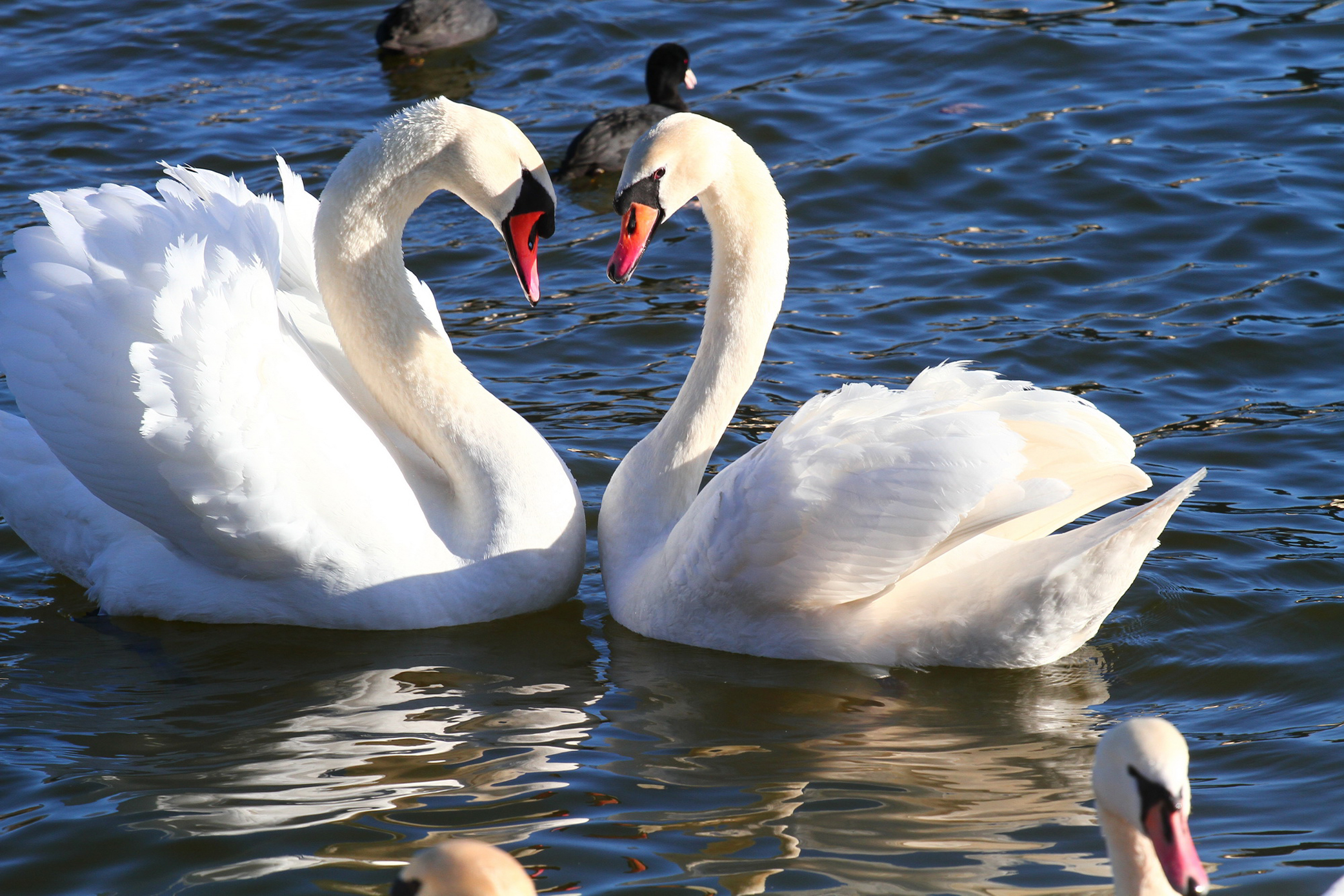 Скачать обои для рабочего стола Черные утки белые лебеди и фото