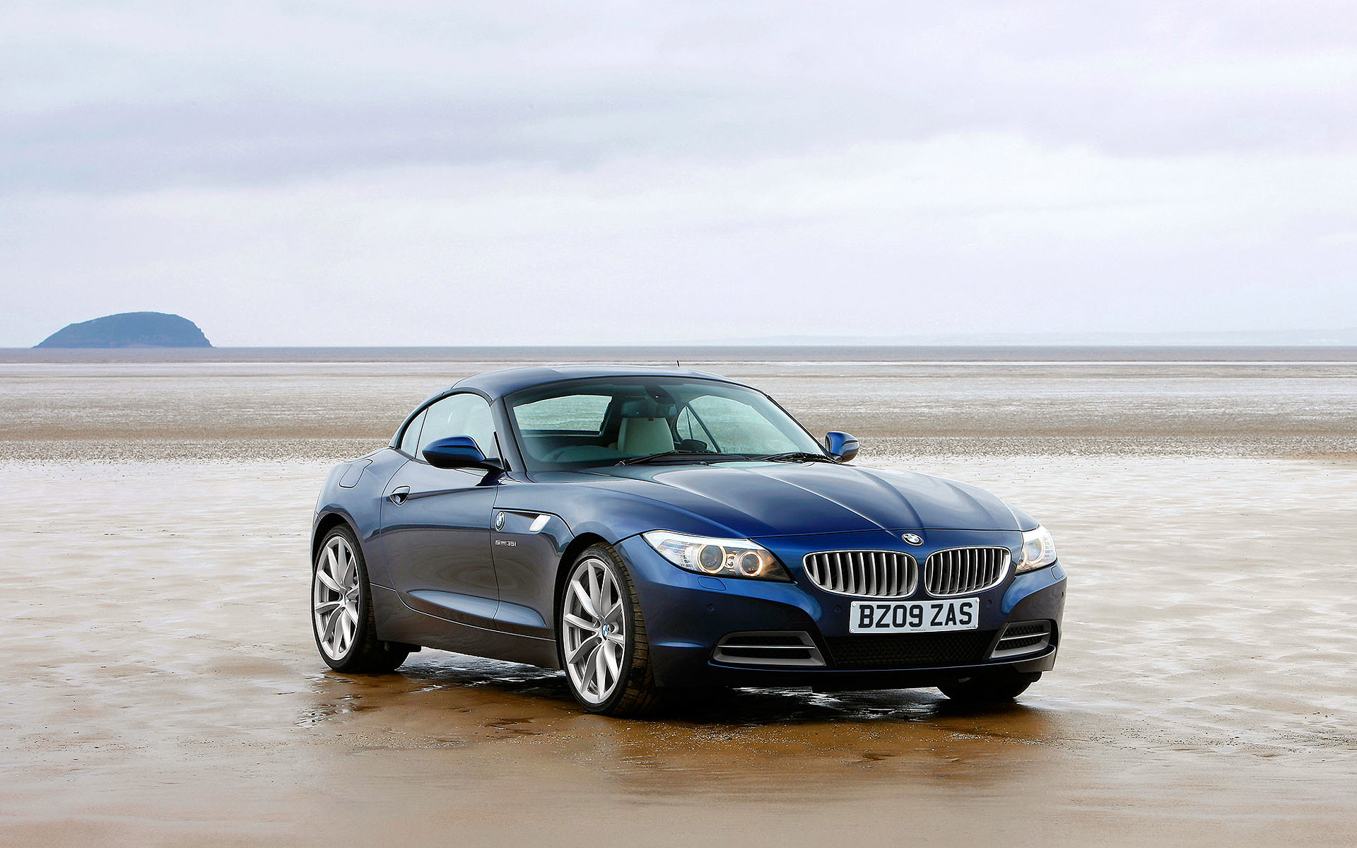 Скачать обои для рабочего стола Чёрный автомобиль BMW на берегу моря и фото