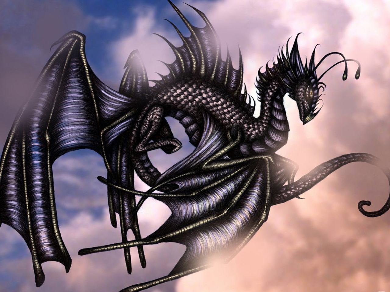 Похожие обои на Черный дракон в облаках: