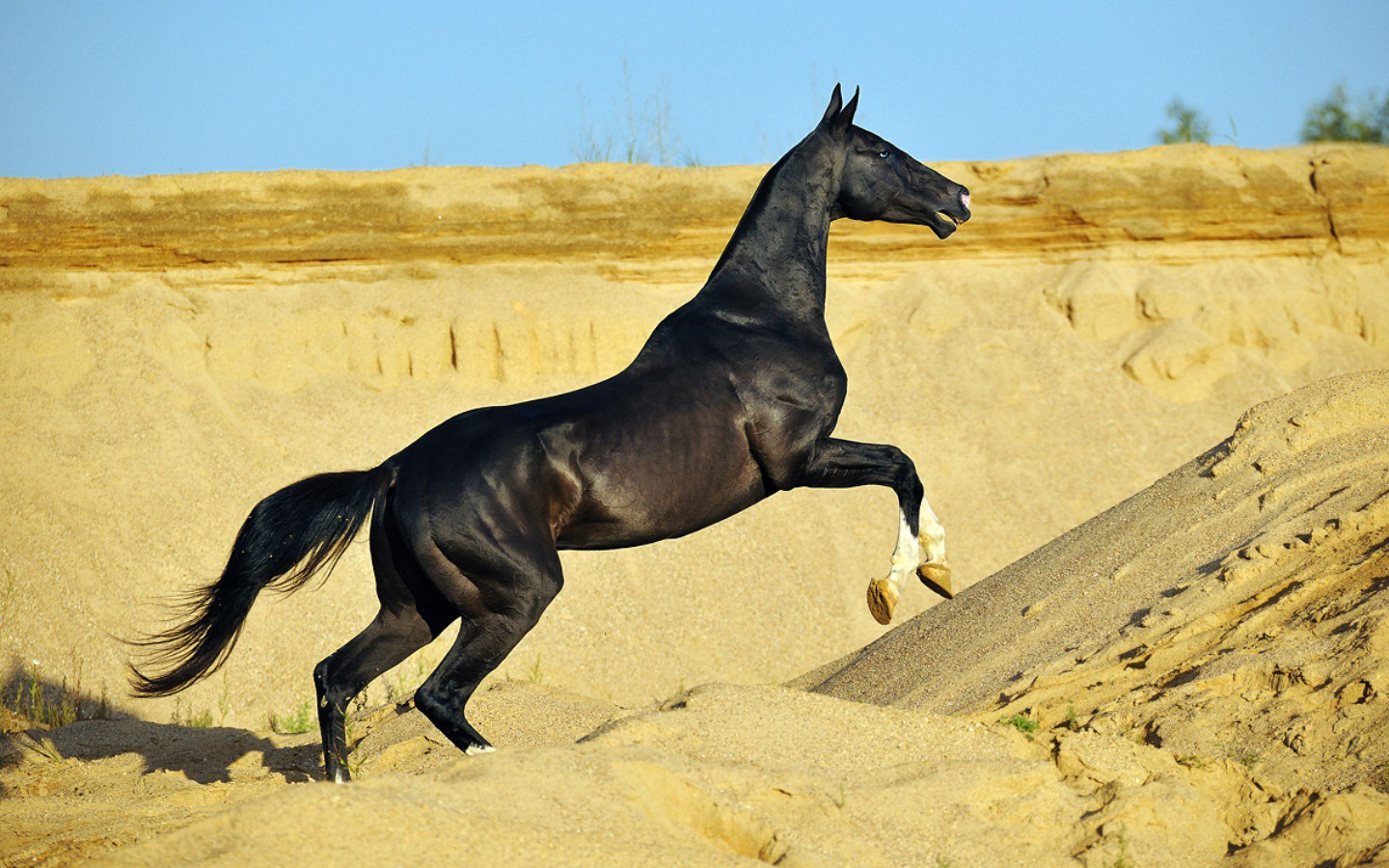 Скачать обои для рабочего стола Черный конь по пескам и фото
