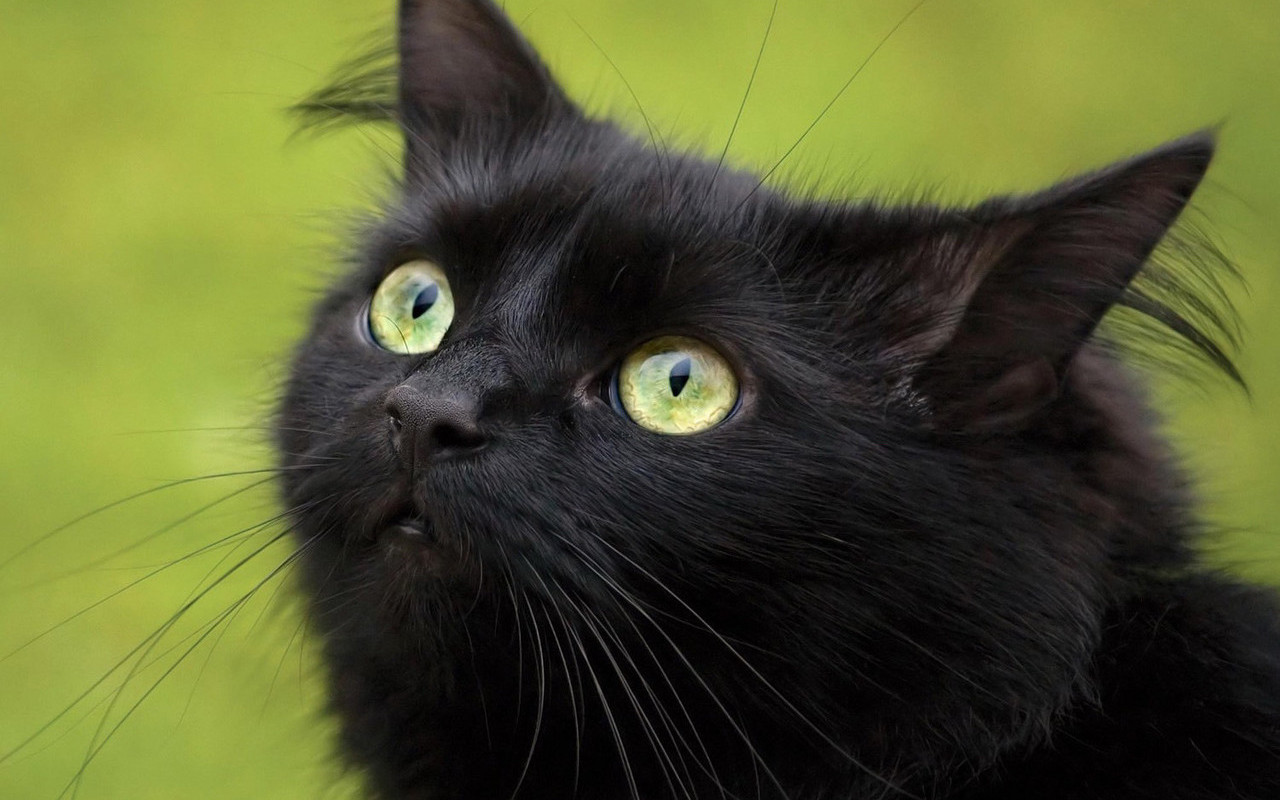 Скачать обои для рабочего стола Черный кот на лужайке и фото