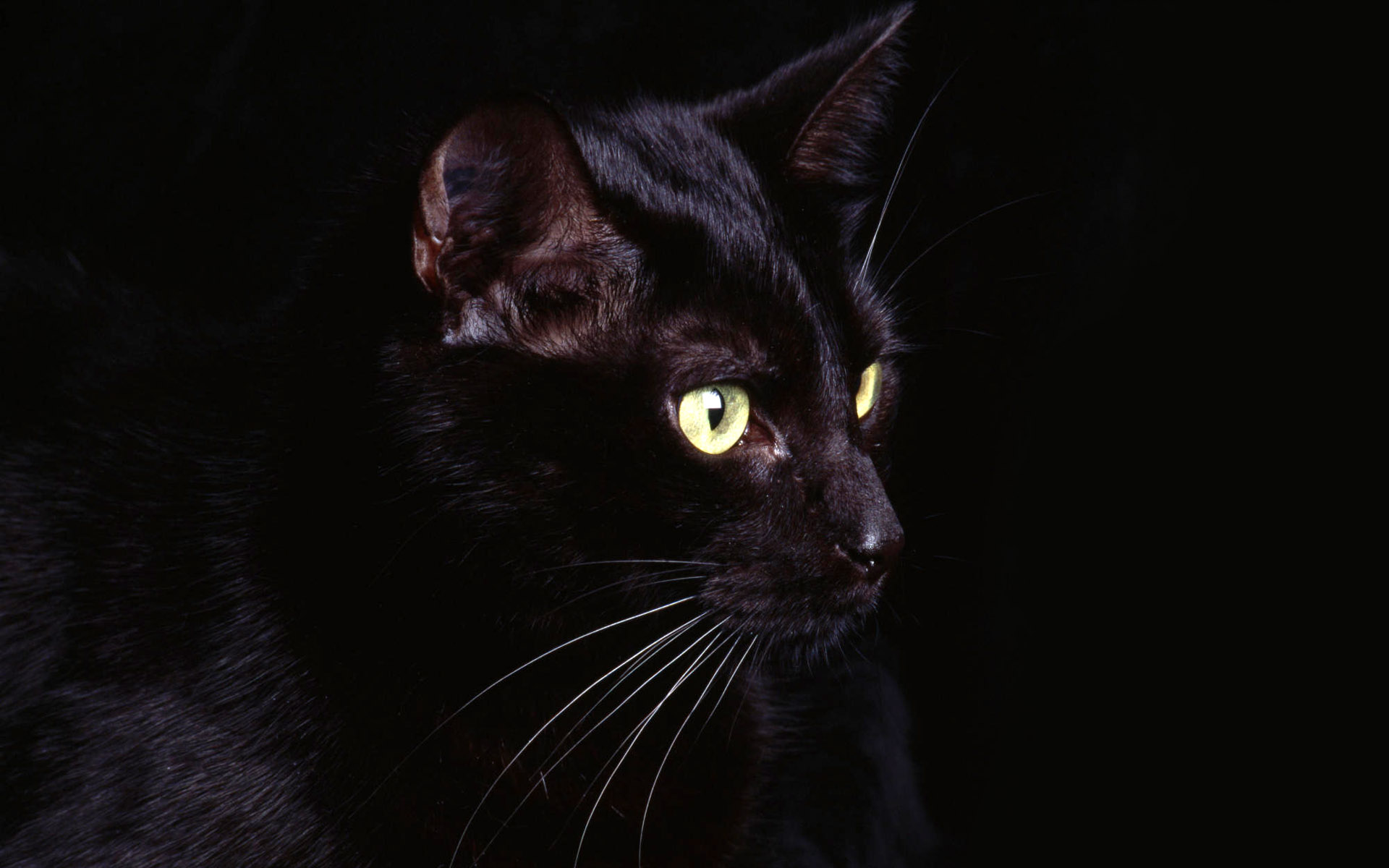 Скачать обои для рабочего стола Черный кот смотрит в сторону и фото