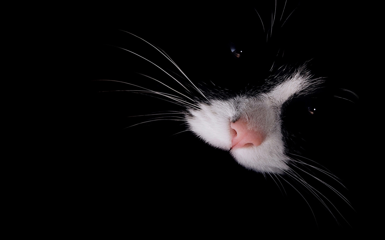Скачать обои для рабочего стола Черный кот в темноте и фото