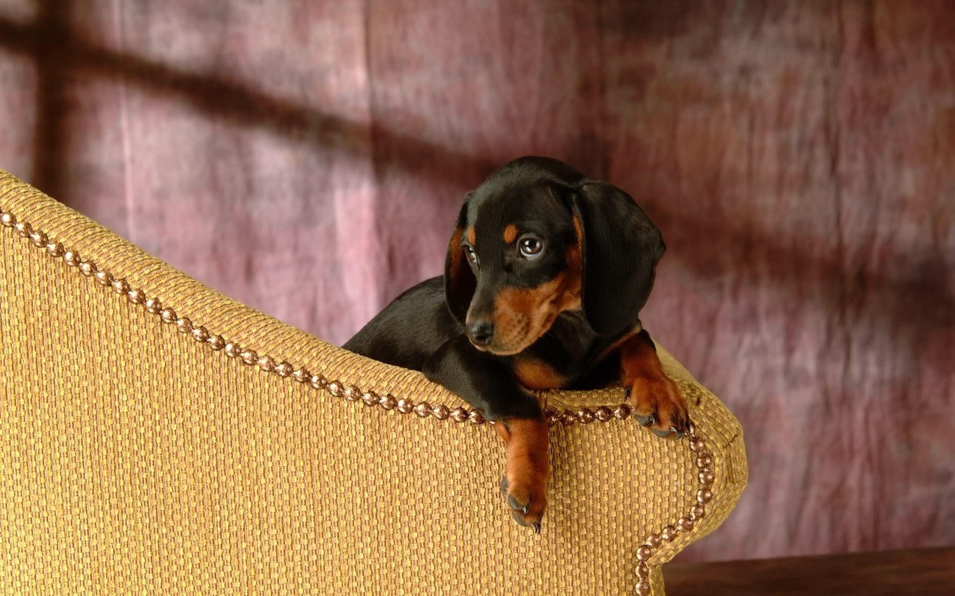 Скачать обои для рабочего стола Черный зверек на спинке дивана и фото
