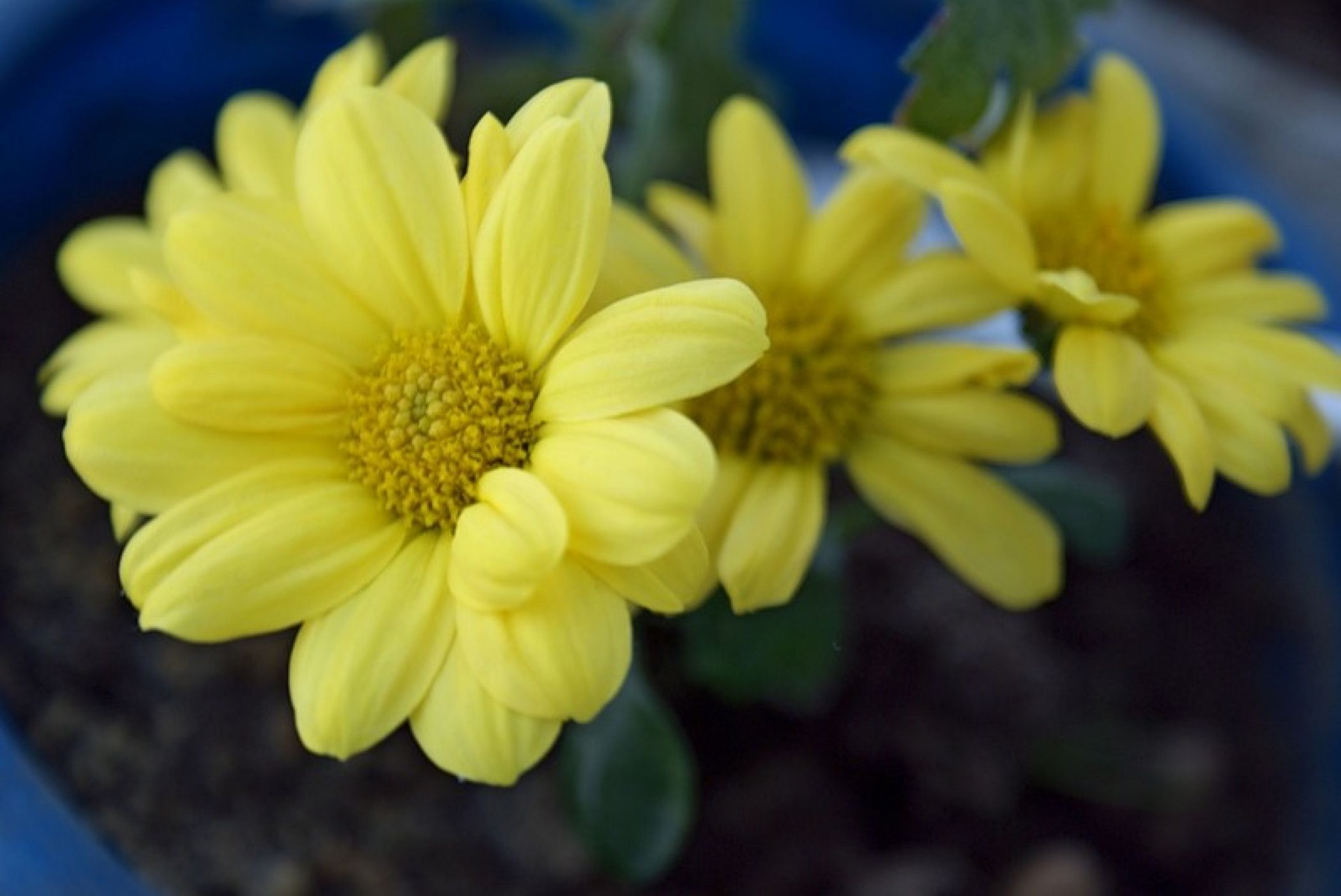 Скачать обои для рабочего стола Четыре жёлтых ромашки и фото