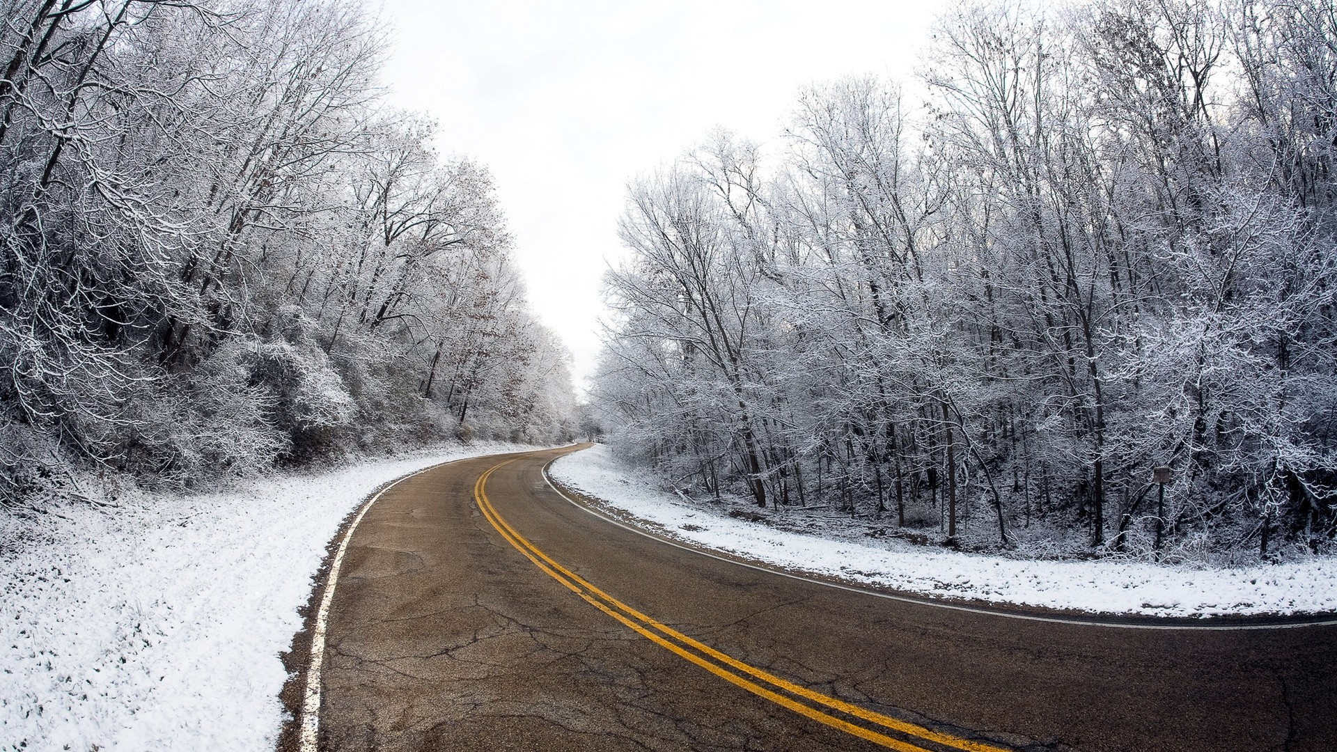 Скачать обои для рабочего стола Чистая зимняя извилистая дорога и фото