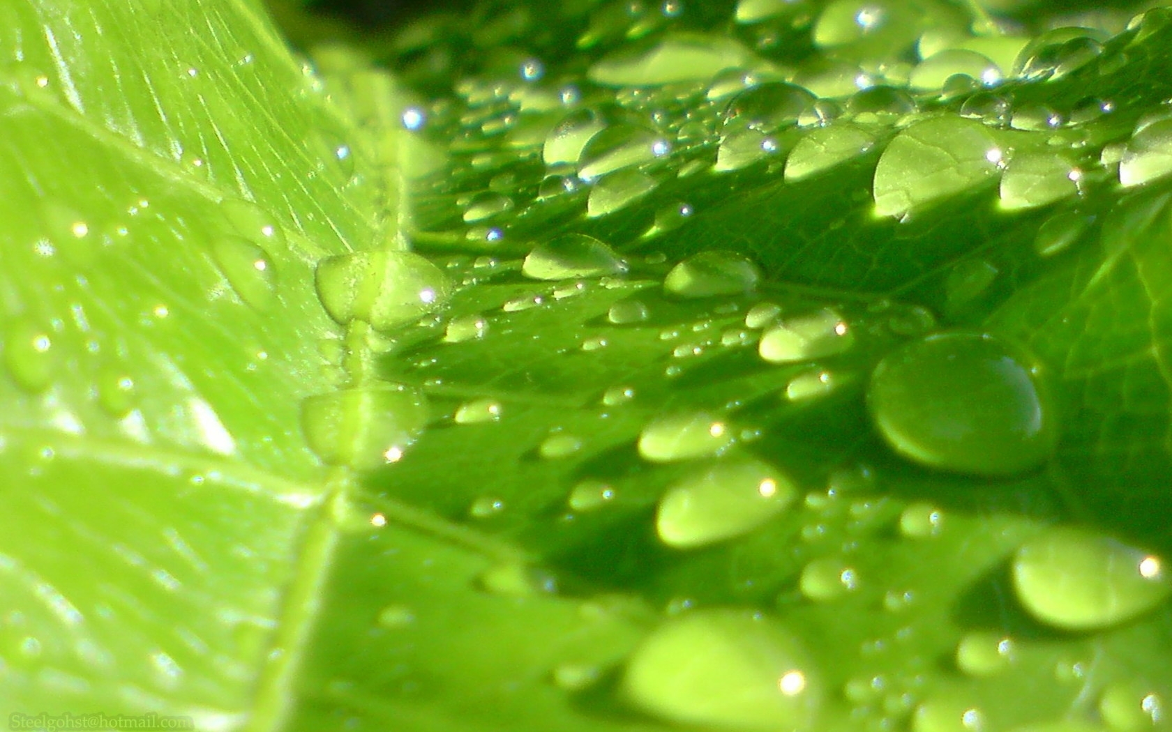 Скачать обои для рабочего стола Чистые капли росы на зеленом листке и фото