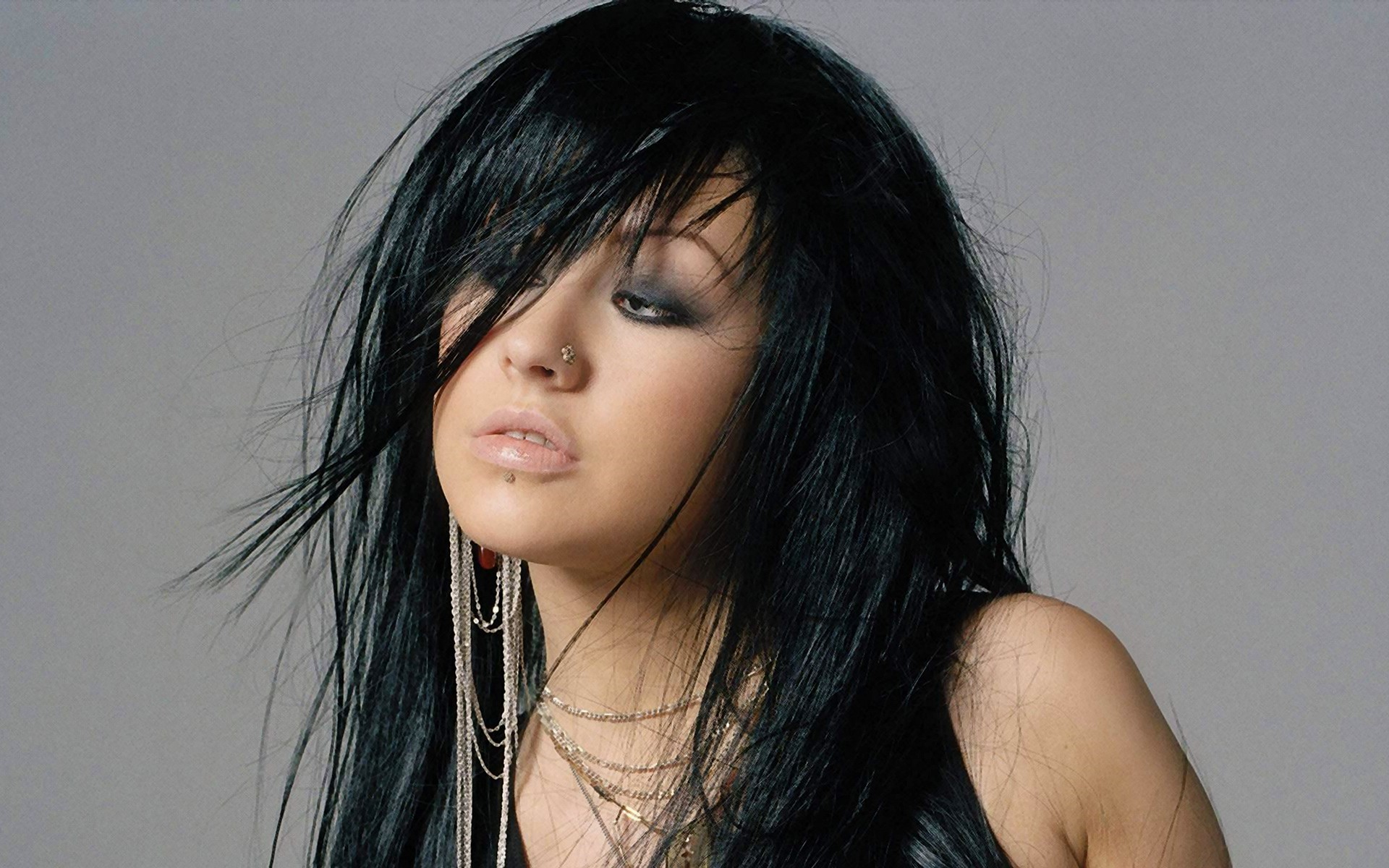 Скачать обои для рабочего стола Christina aguilera с черными волосами и фото