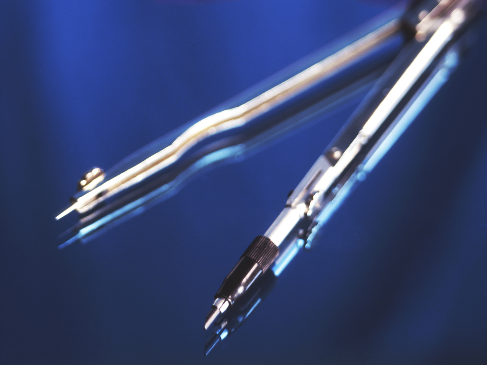 Скачать обои для рабочего стола Циркуль на синем фоне и фото