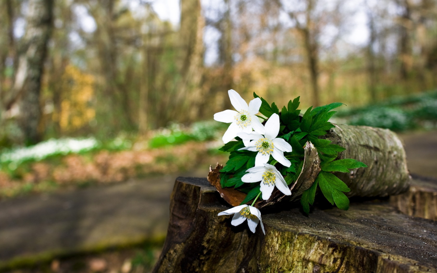 Скачать обои для рабочего стола Цветочки на пенёчке и фото