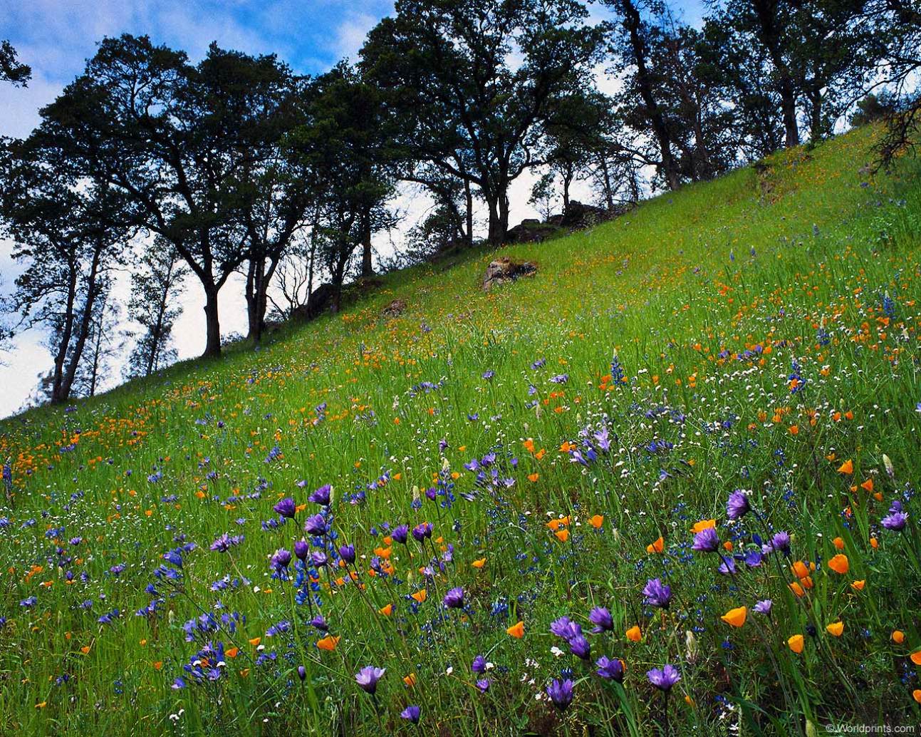 Скачать обои для рабочего стола Цветочная поляна и склон и фото