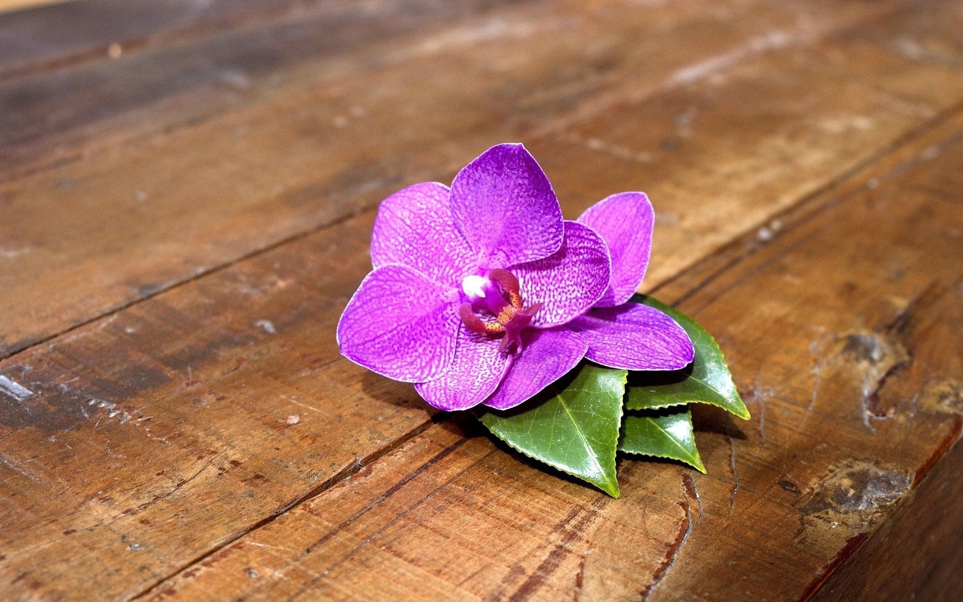 Скачать обои для рабочего стола Цветок фиолетовый на досках и фото