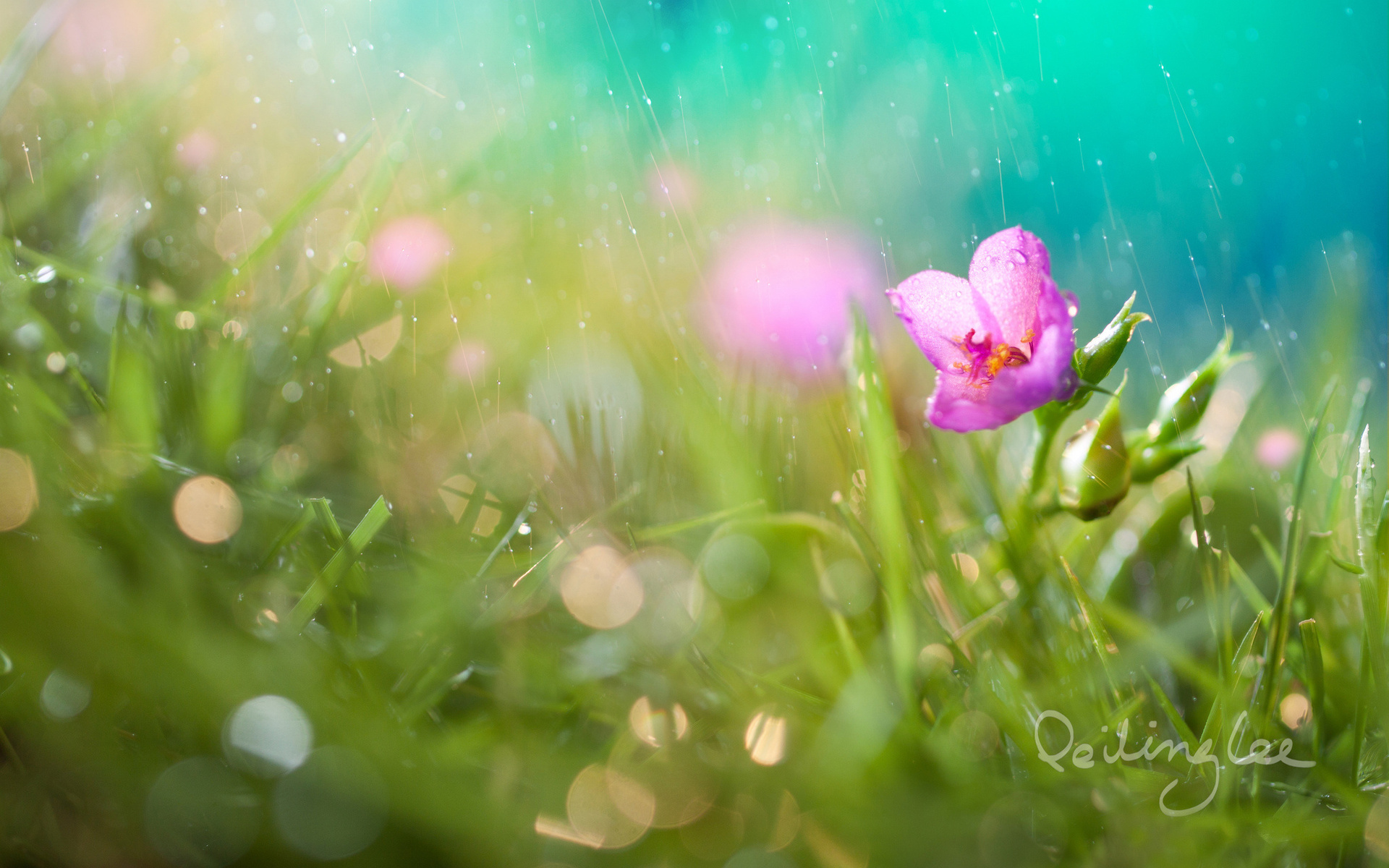 Скачать обои для рабочего стола Цветок под дождем и фото