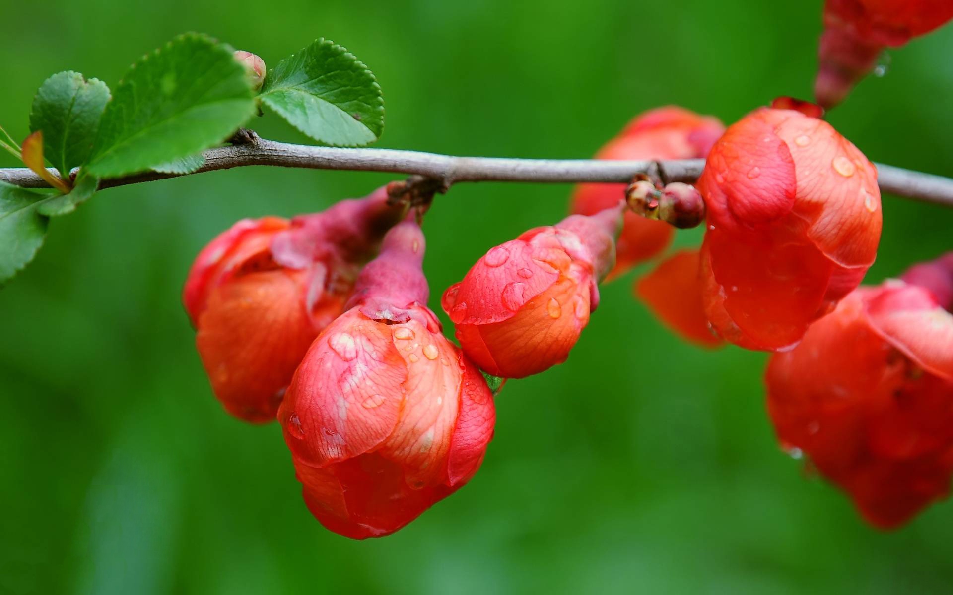 Скачать обои для рабочего стола цветущая ветка с капелькaми дождинками и фото