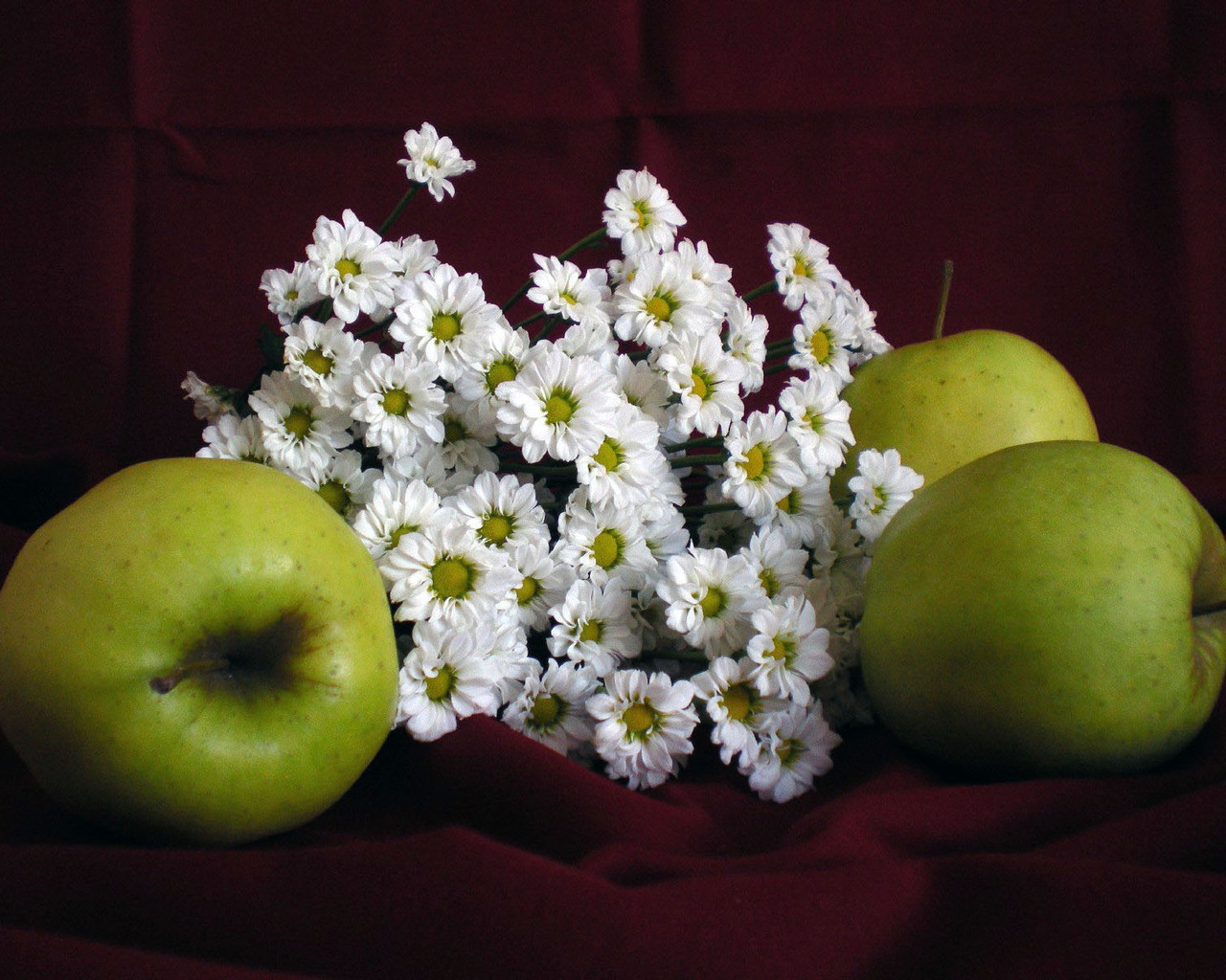 Скачать обои для рабочего стола Цветы и яблоки и фото