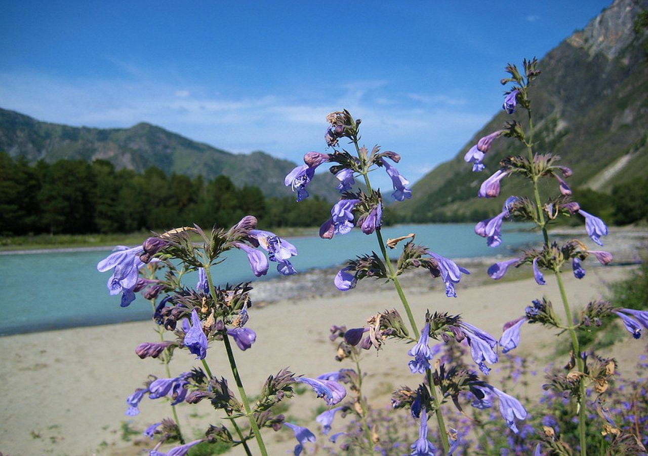 Скачать обои для рабочего стола Цветы на фоне гор и фото