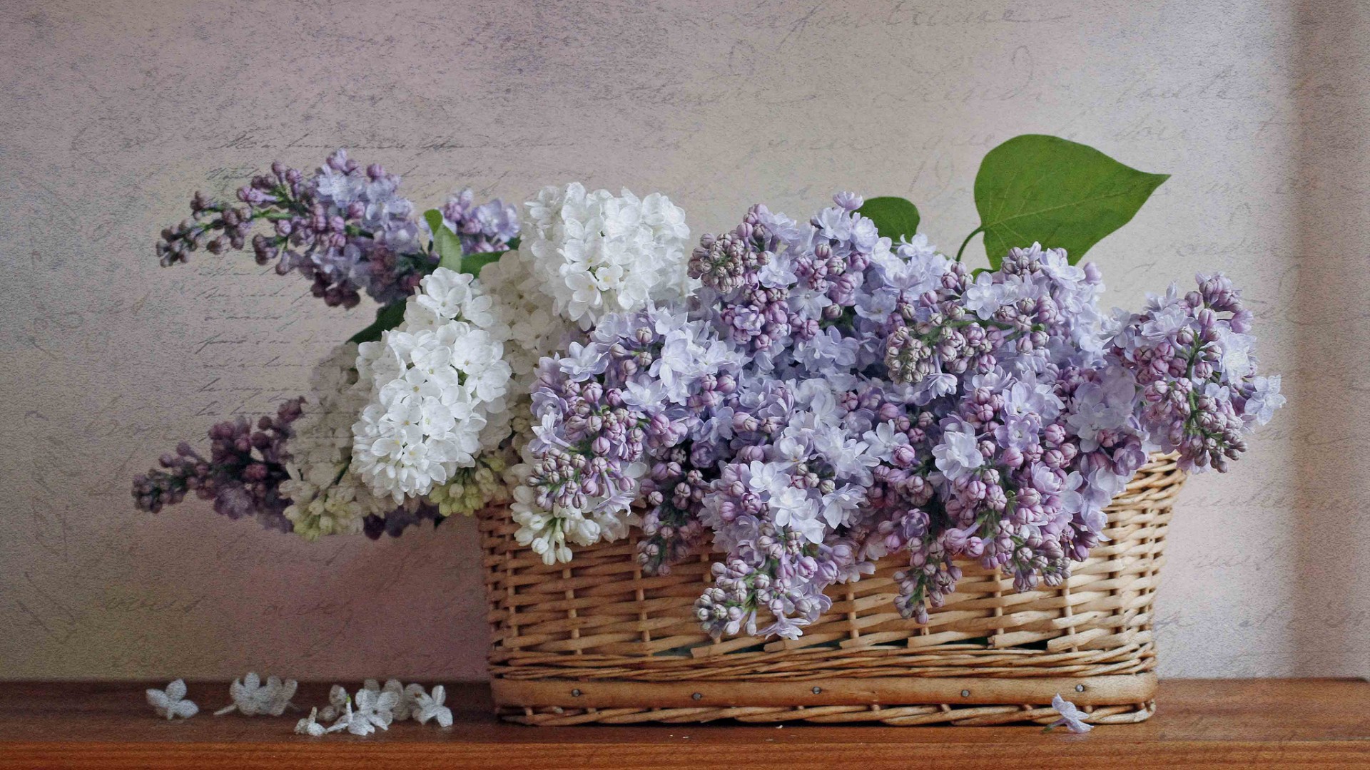 Похожие обои на Цветы сирени в плетенном лукошке: