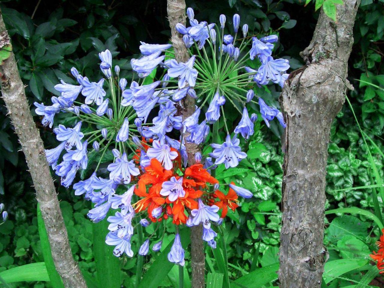 Скачать обои для рабочего стола Цветы среди деревьев и фото